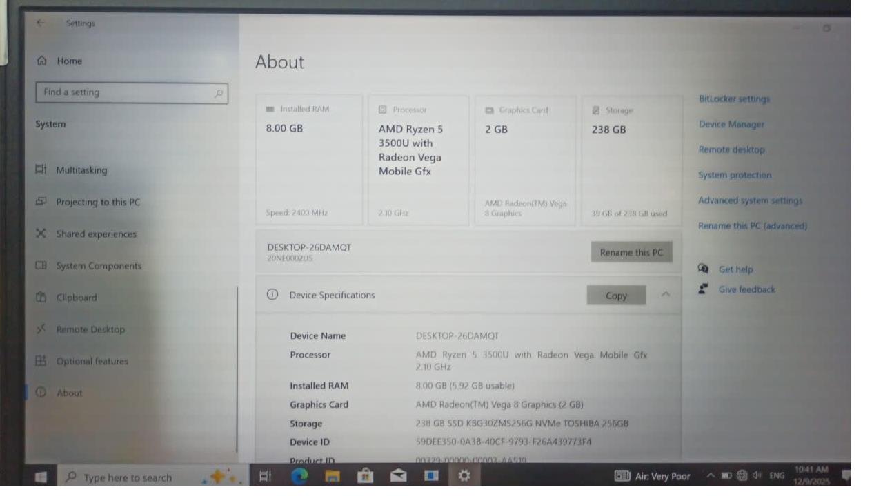 هارد: 256 SSD nvme
