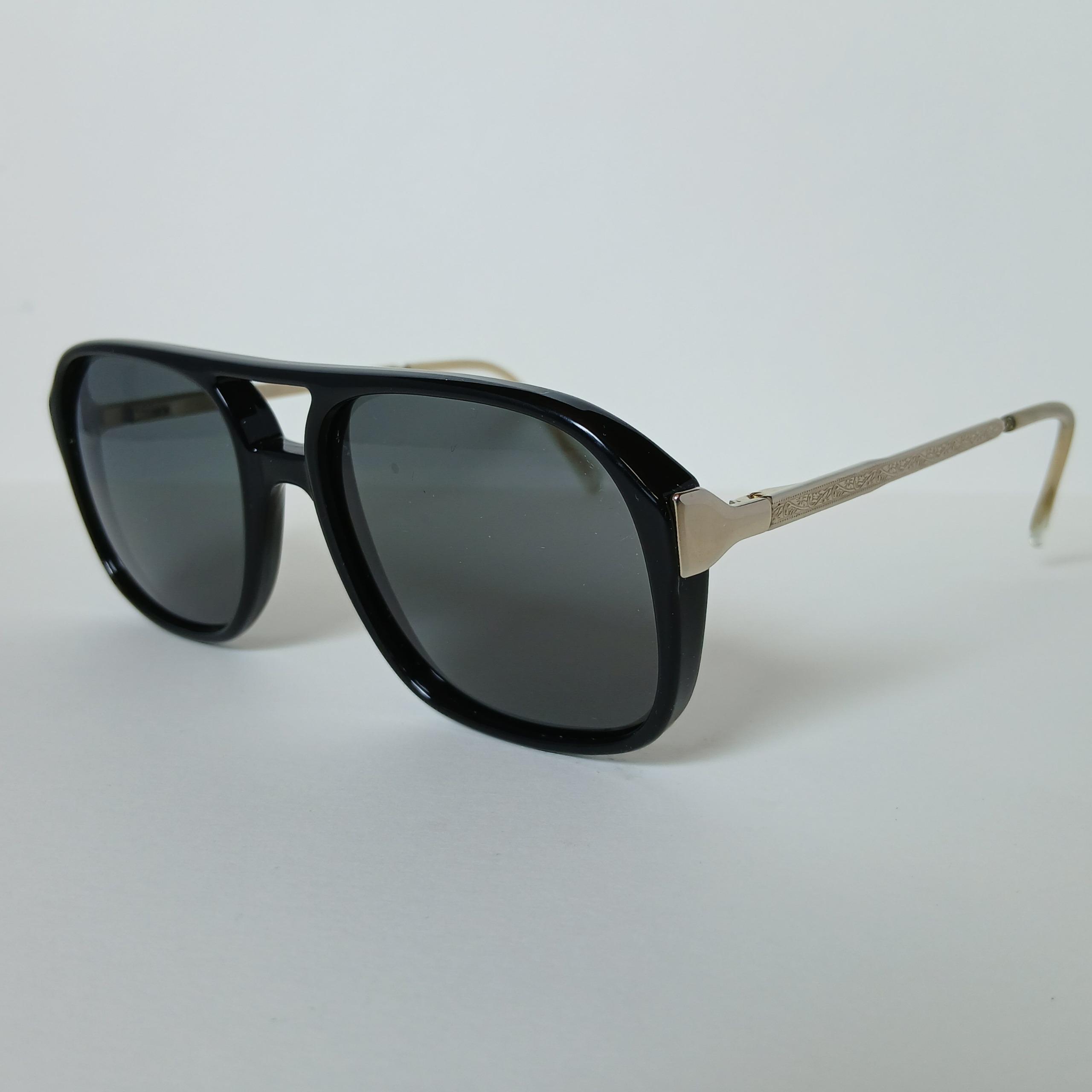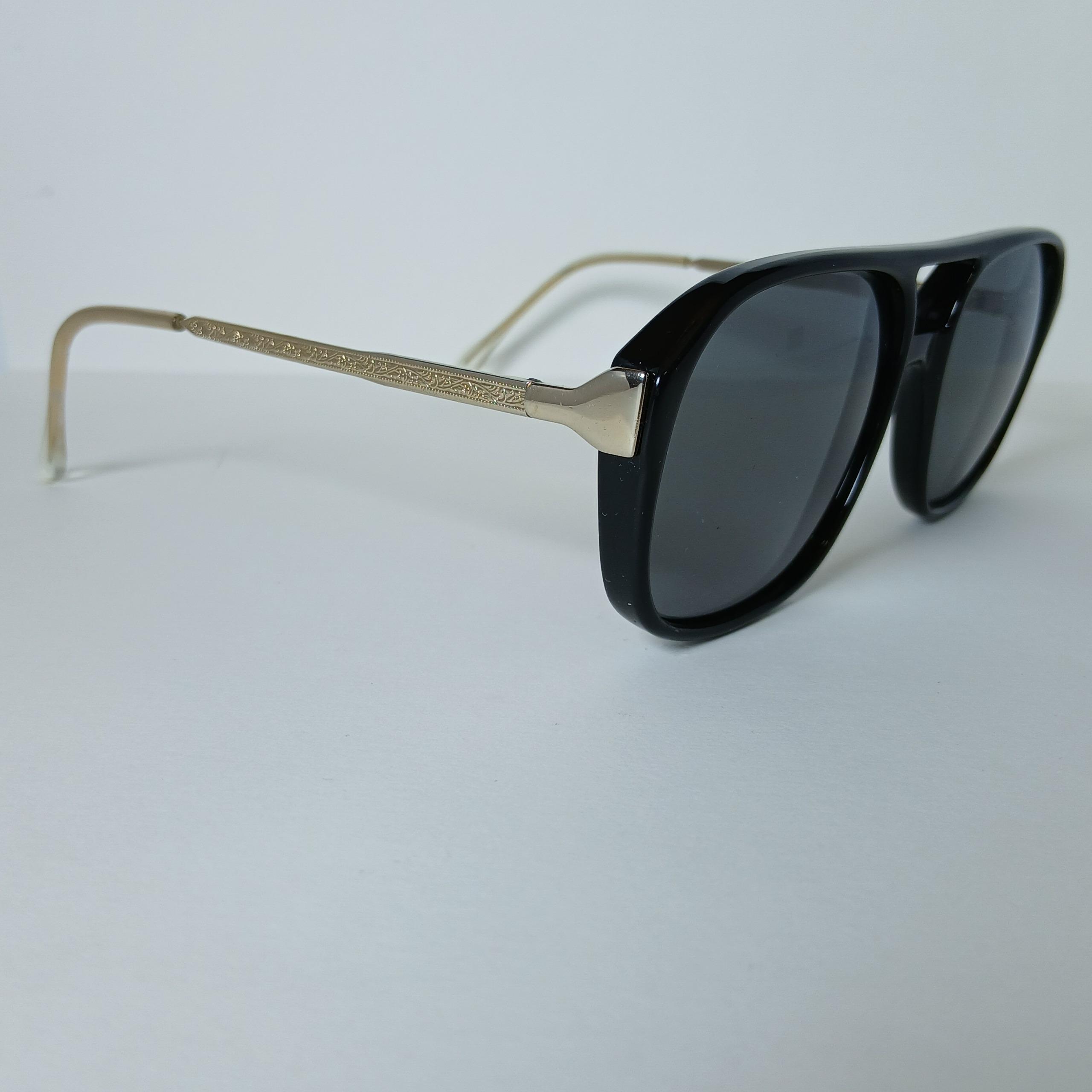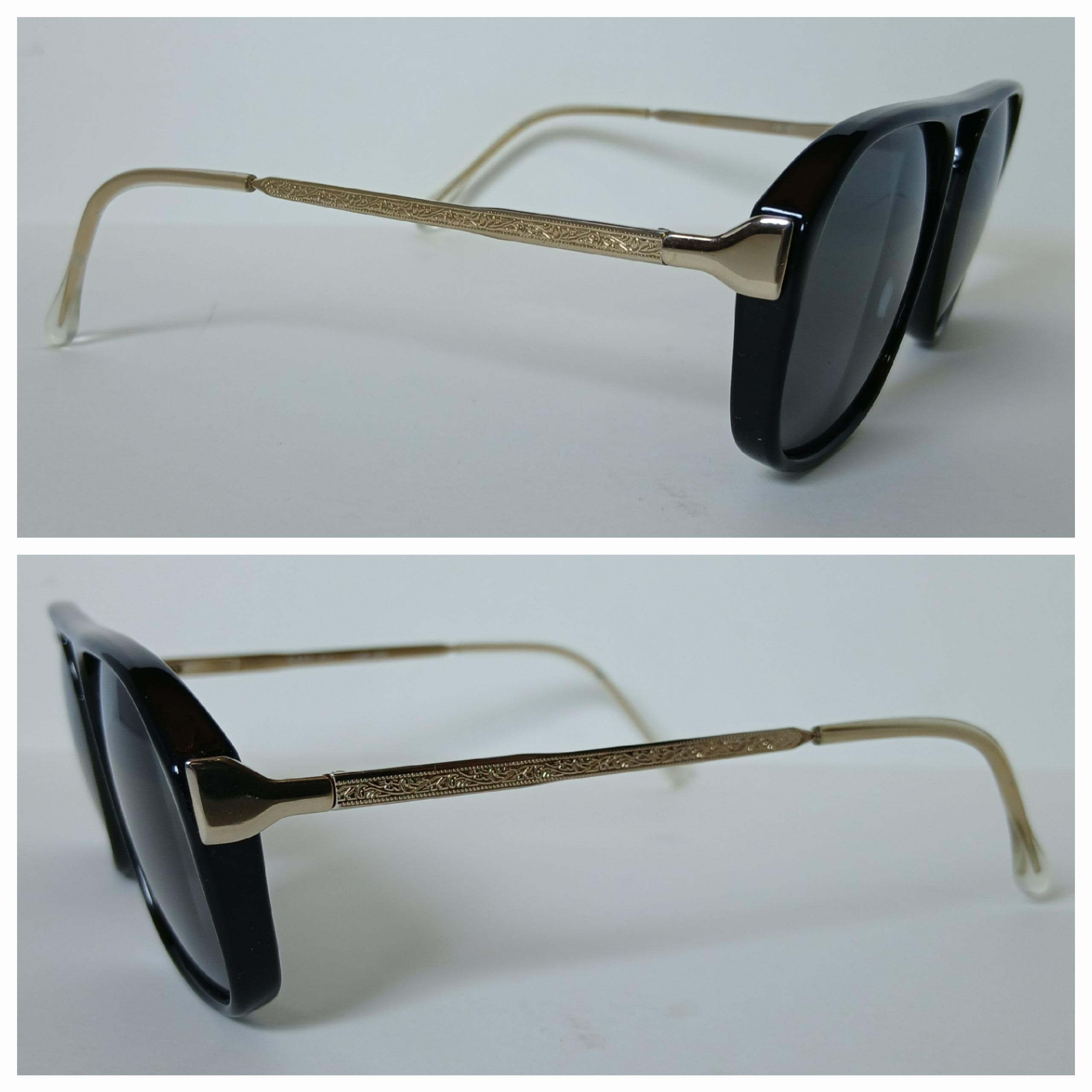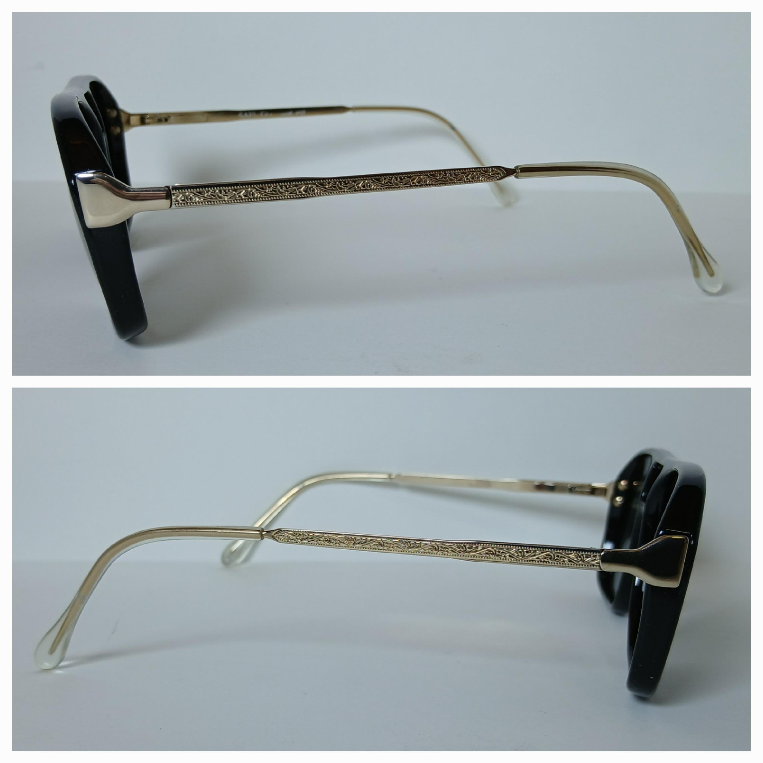این عینک متعلق به بیش از 4 دهه قبل،ساخته شده از عالی ترین مواد bio acetate و استیل با آبکاری عالی، که با گذشت چنین زمان طولانی هنوز هم جلوه نو بودن خود را حفظ کرده است. در ساخت عینک ترکیبی از فلز و پلاستیک ( استات طبیعی ) به کار رفته. دسته ها فنری هستند با طرح و کیفیت خاص .رنگ بدنه فریم مشکی براق و رنگ دسته ها طلائی روشن با نقش های اسلیمی برجسته .اندازه های عینک به شرح زیر است: