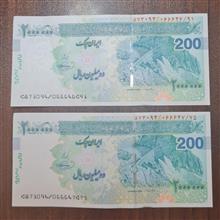 و درود جفت تراول 200 هزار تومانی قدیم با امضای دکتر محمود بهمنی و از باند نیمه رند تکرار 4 مرتبه عدد 6
