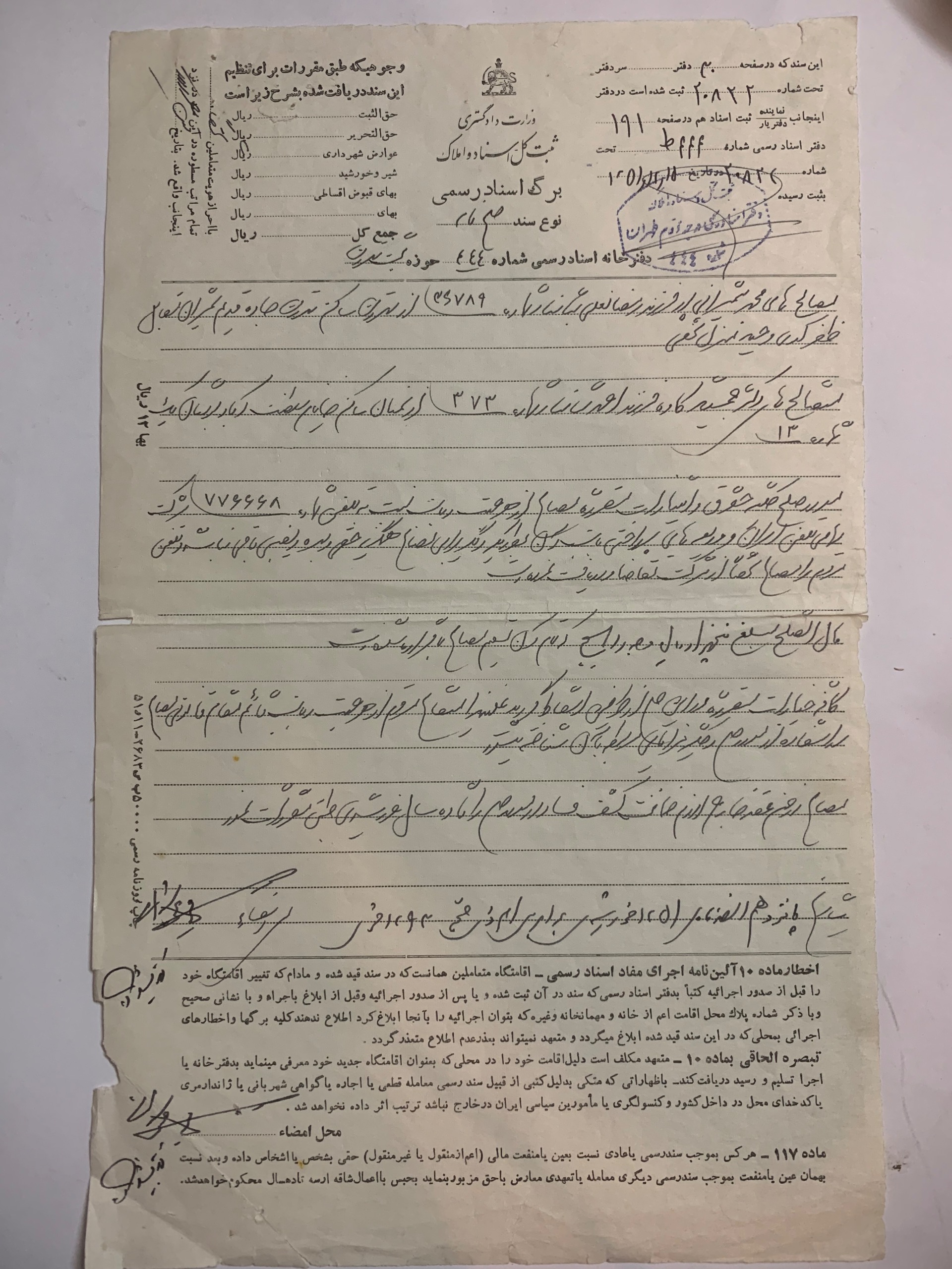 دو برگ سند رسمی دوره پهلوی
