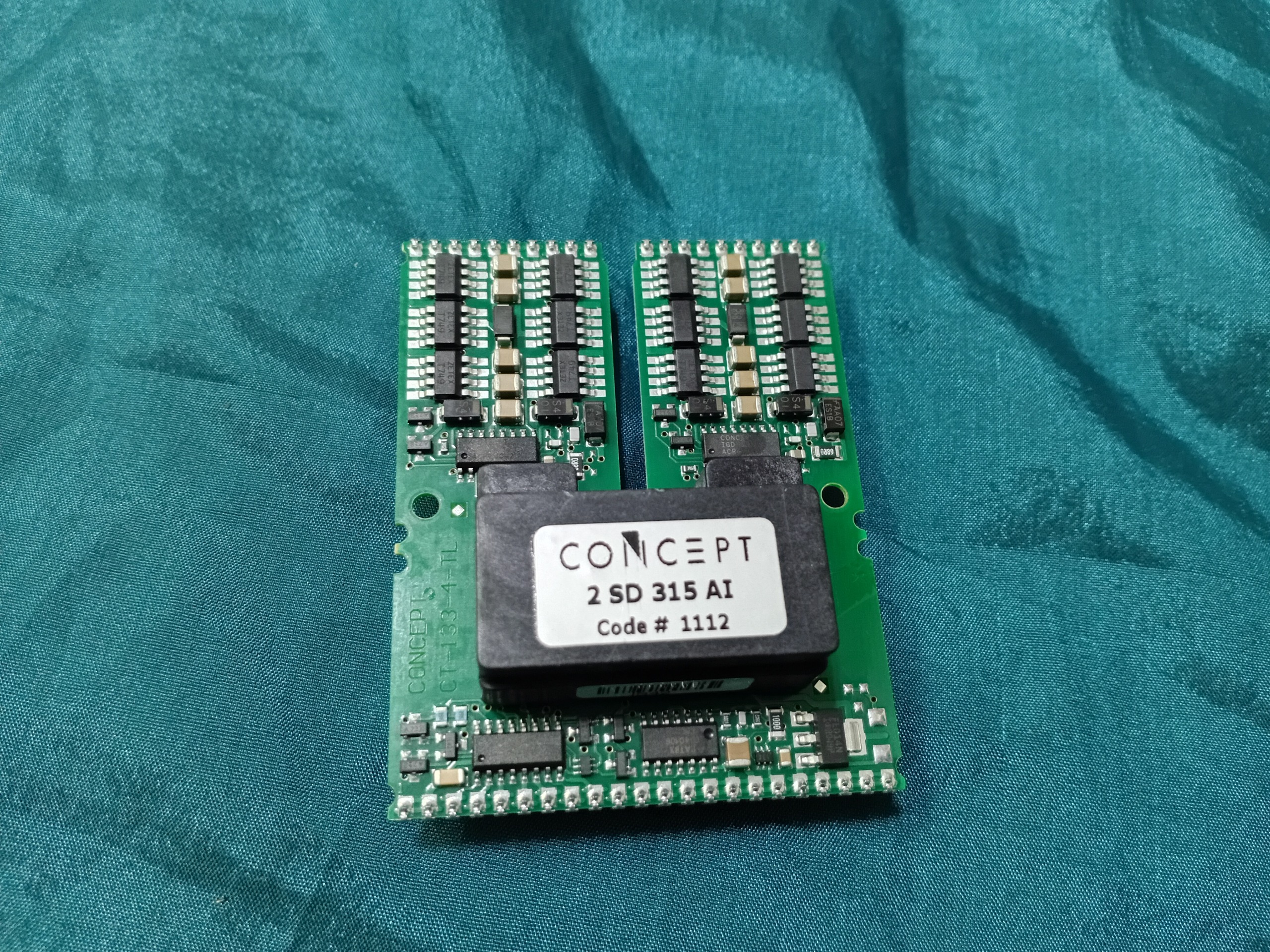 سری 2SD315AI شامل هستههای درایور SCALE-1 دو کاناله برای IGBTها تا 1700 ولت (به صورت اختیاری تا 3300 ولت) است. قابلیت جریان گیت آن ± 15 آمپر است که برای IGBTها از 200 آمپر تا معمولاً 800 آمپر بهینه شده است. دو کانال درایو دارای ایزولاسیون الکتریکی بین قطعات الکترونیکی کنترل و بخش قدرت هستند. ولتاژ گیت 0 / +15 ولت یا ±15 ولت است. هر کانال به یک تابع نظارت بر Vce قابل برنامهریزی برای محافظت در برابر اتصال کوتاه و اضافه جریان مجهز است. درایور به چیپست درایور CONCEPT SCALE-1 برنده جایزه مجهز شده است و میتواند در دو حالت کار کند: یا با دو کانال درایور مستقل یا به عنوان یک درایور نیم پل با تولید زمان مرده داخلی. مبدل DC/DC ایزوله الکتریکی یکپارچه، توان درایو 3 وات را برای هر کانال تأمین میکند.