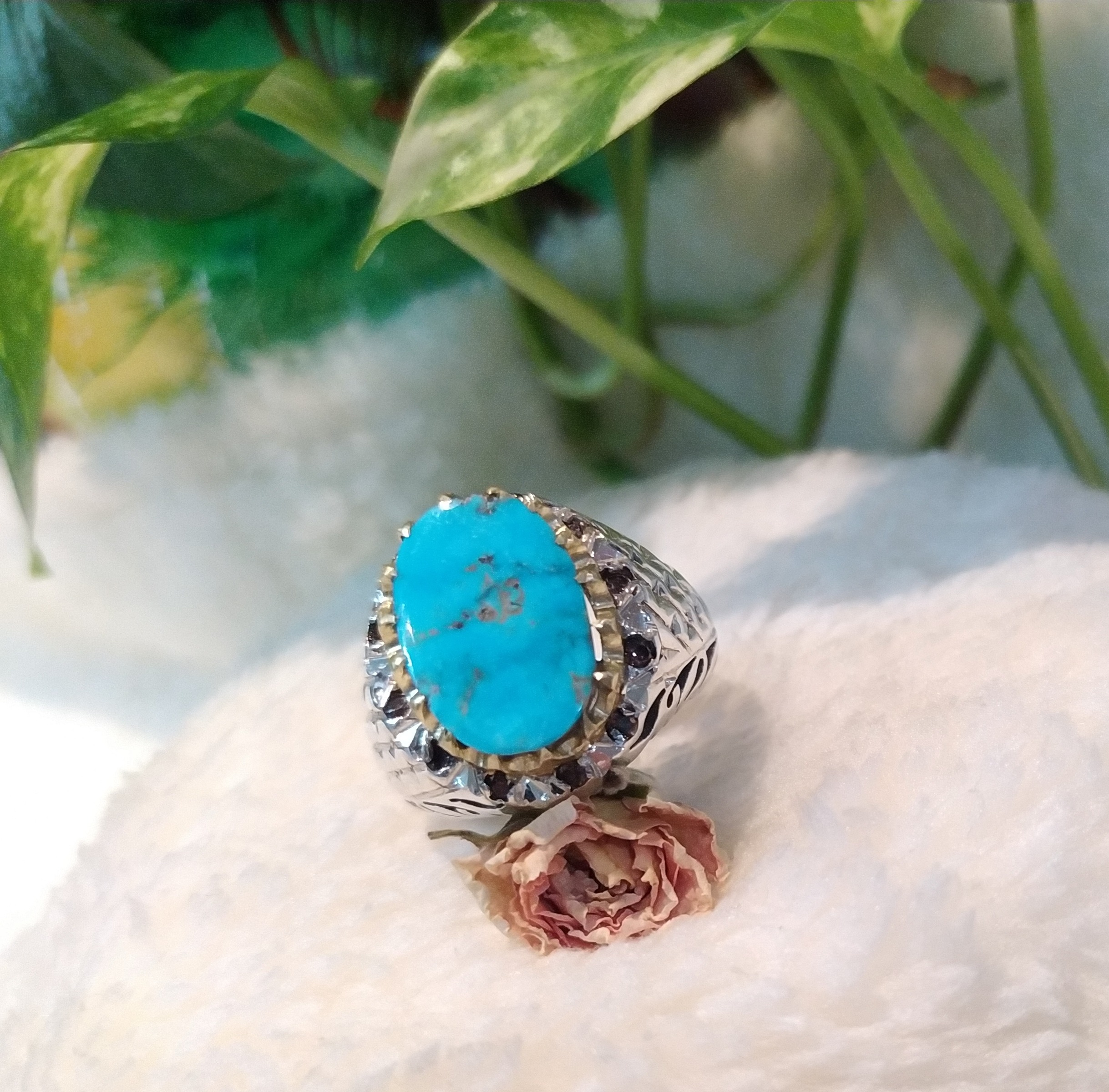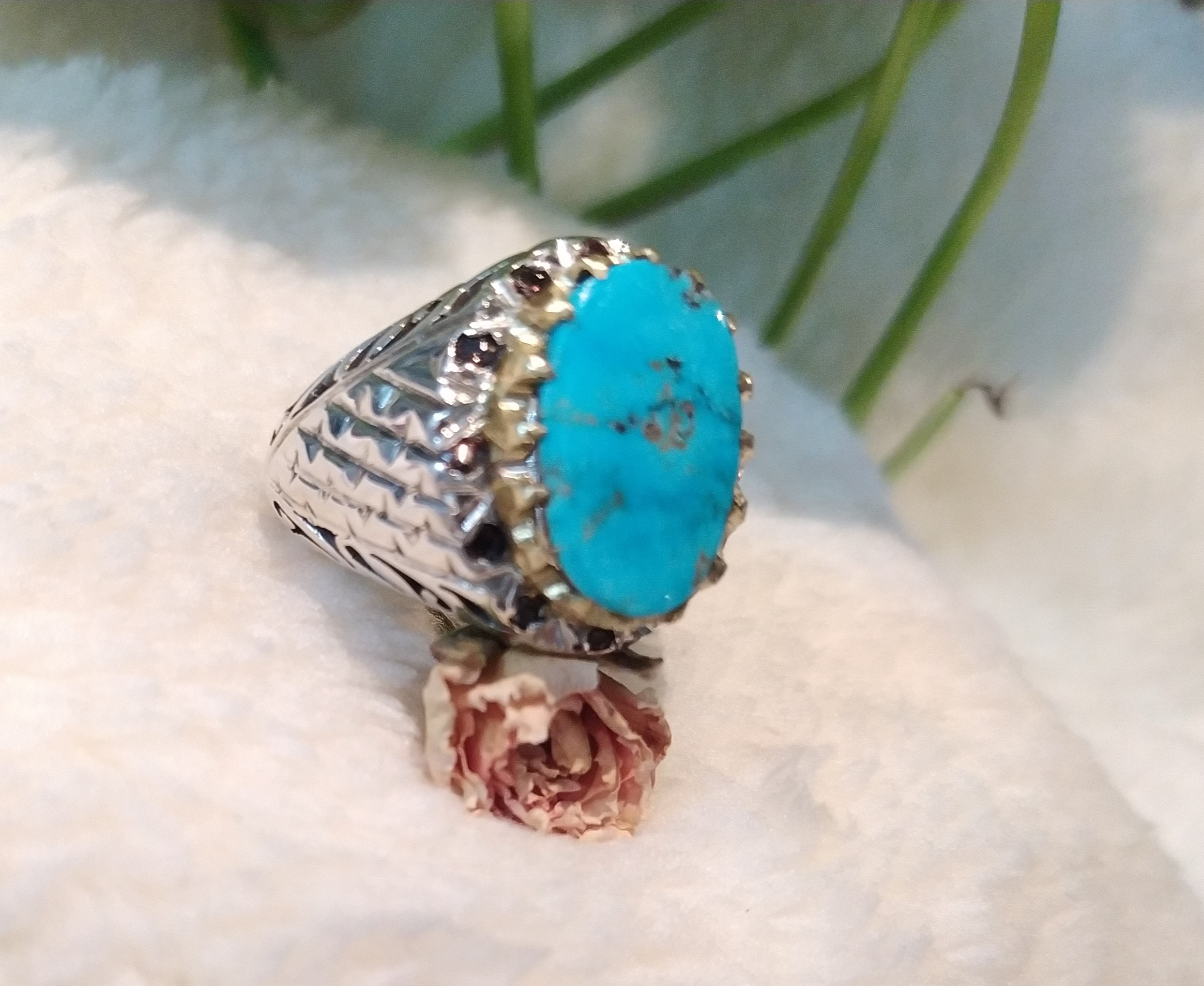 انگشتر نقره مردانه فاخر با سنگ فیروزه نیشابورعجمی