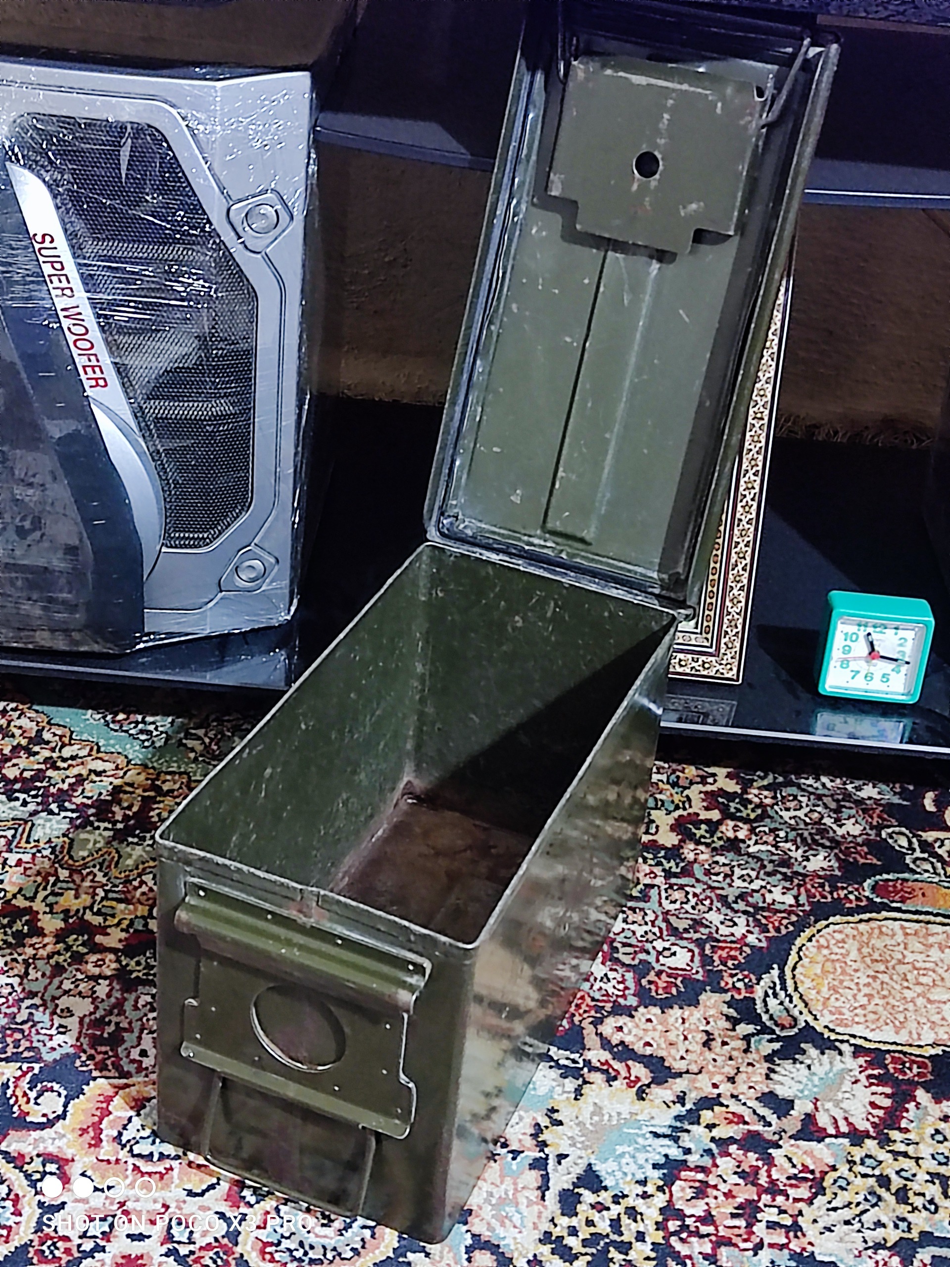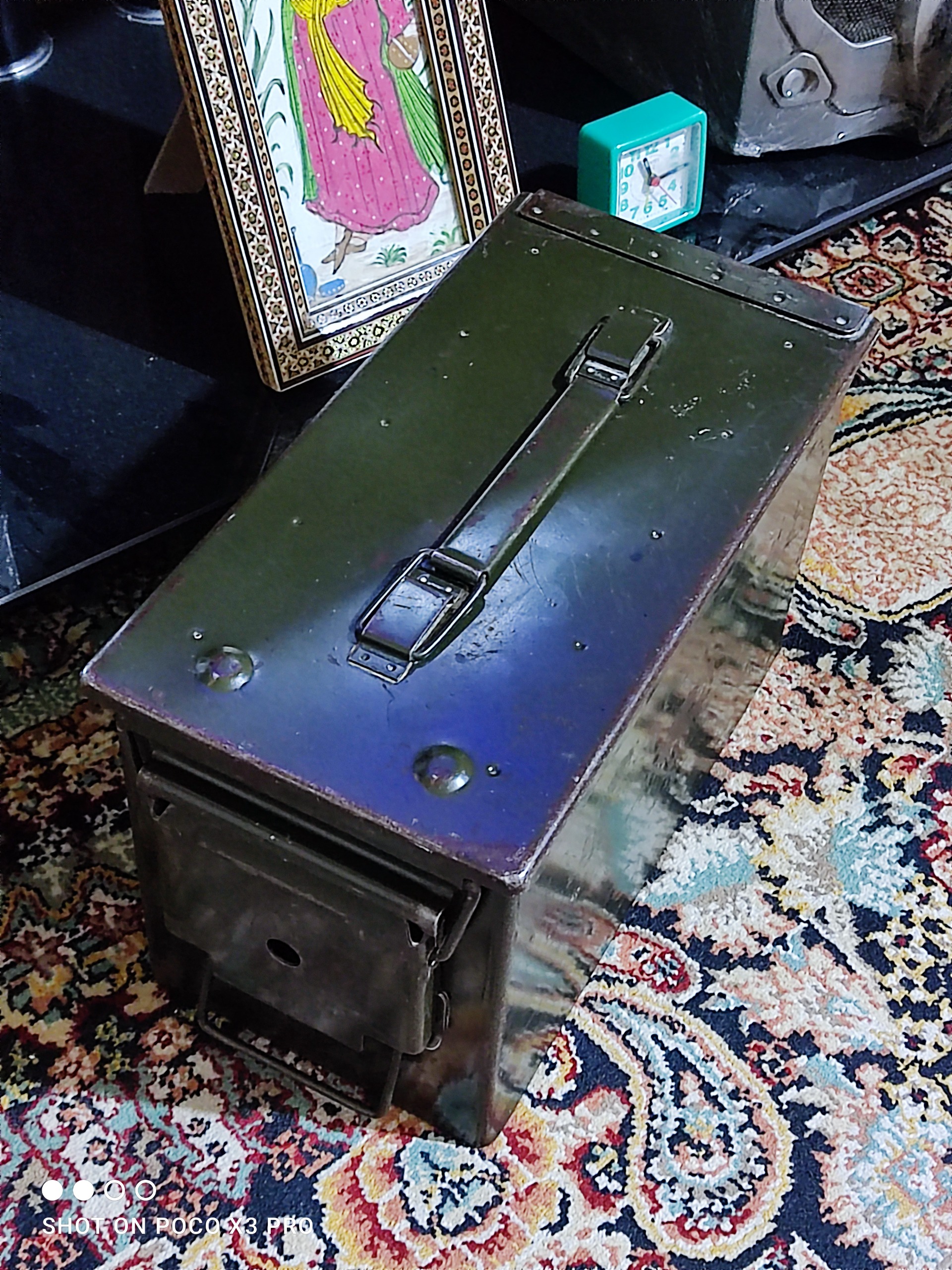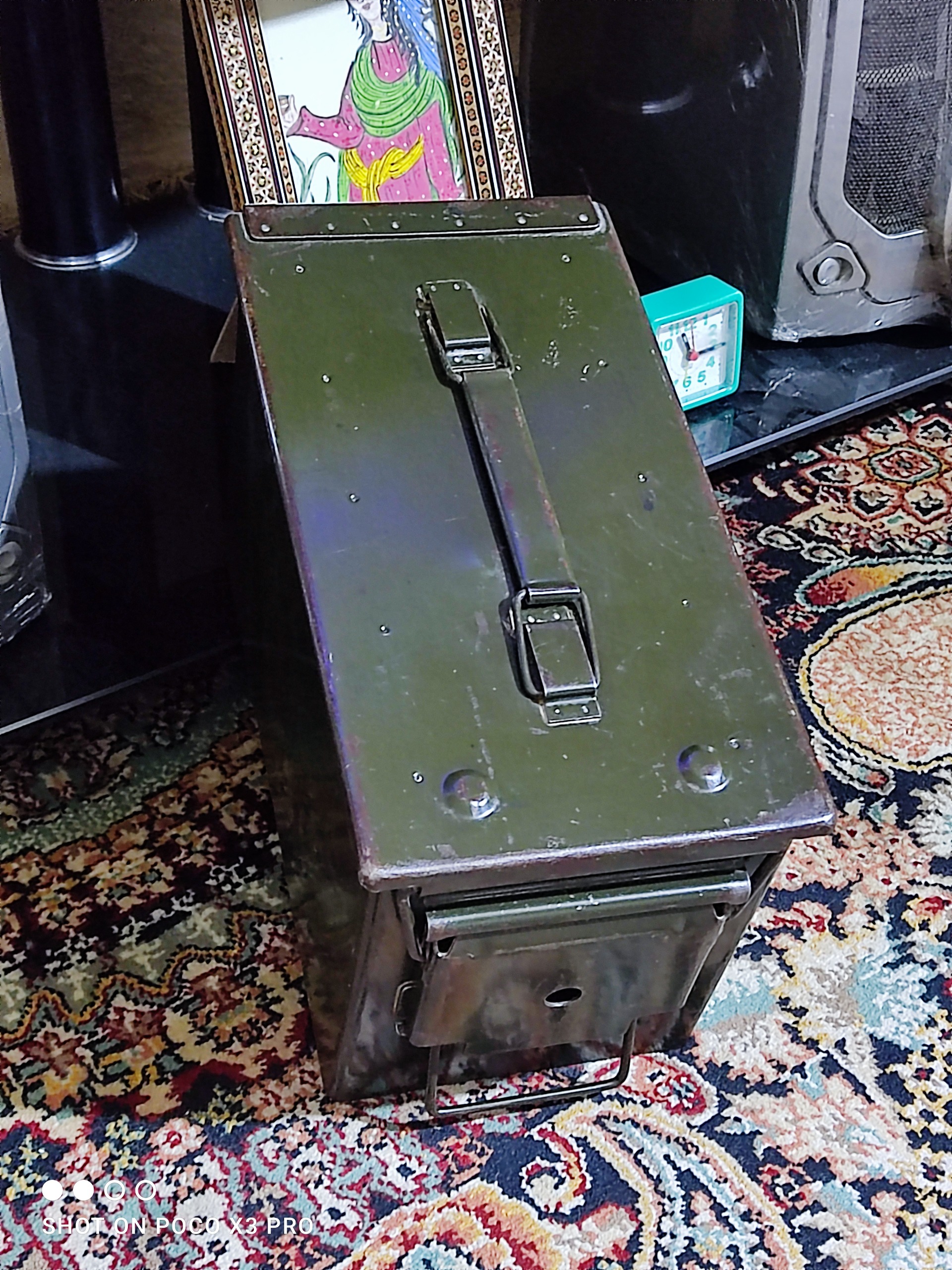 جعبه فولادی امریکایی قدیمی بسیار بسیار مهمم و جادار و جوندار مطابق تصاویر ایم جعبه مربوط به زمان جنگ جهانی دوم میباشد جعبه مهمات بهش میگفتن سالم و تمیز و بکر لاستیک دربش هنوز سالمه