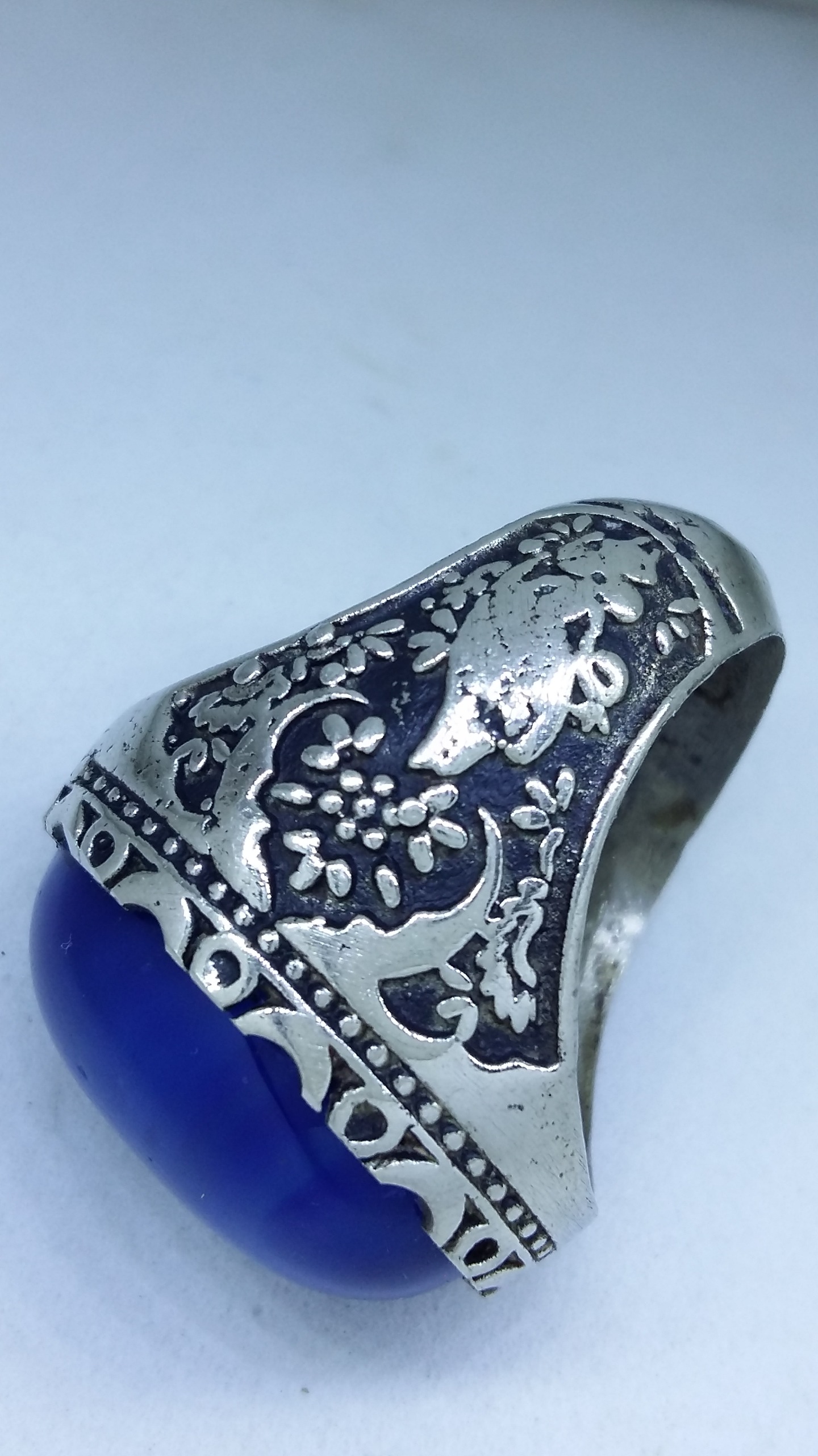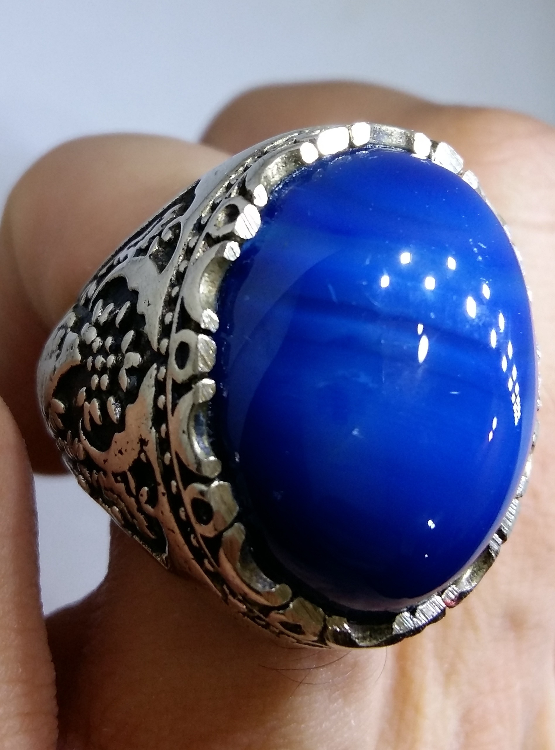 انگشتر شاهانه قلمزنی عقیق آبی بزرگ برزیلی اصیل
