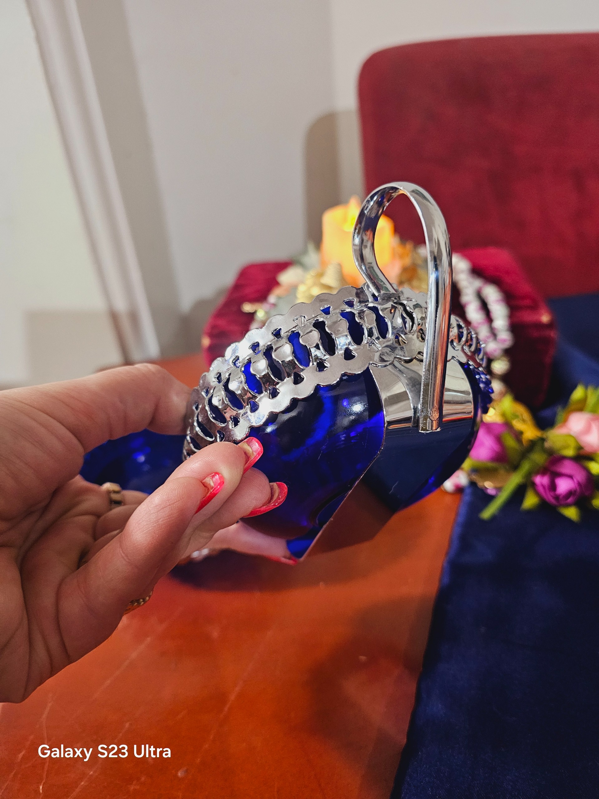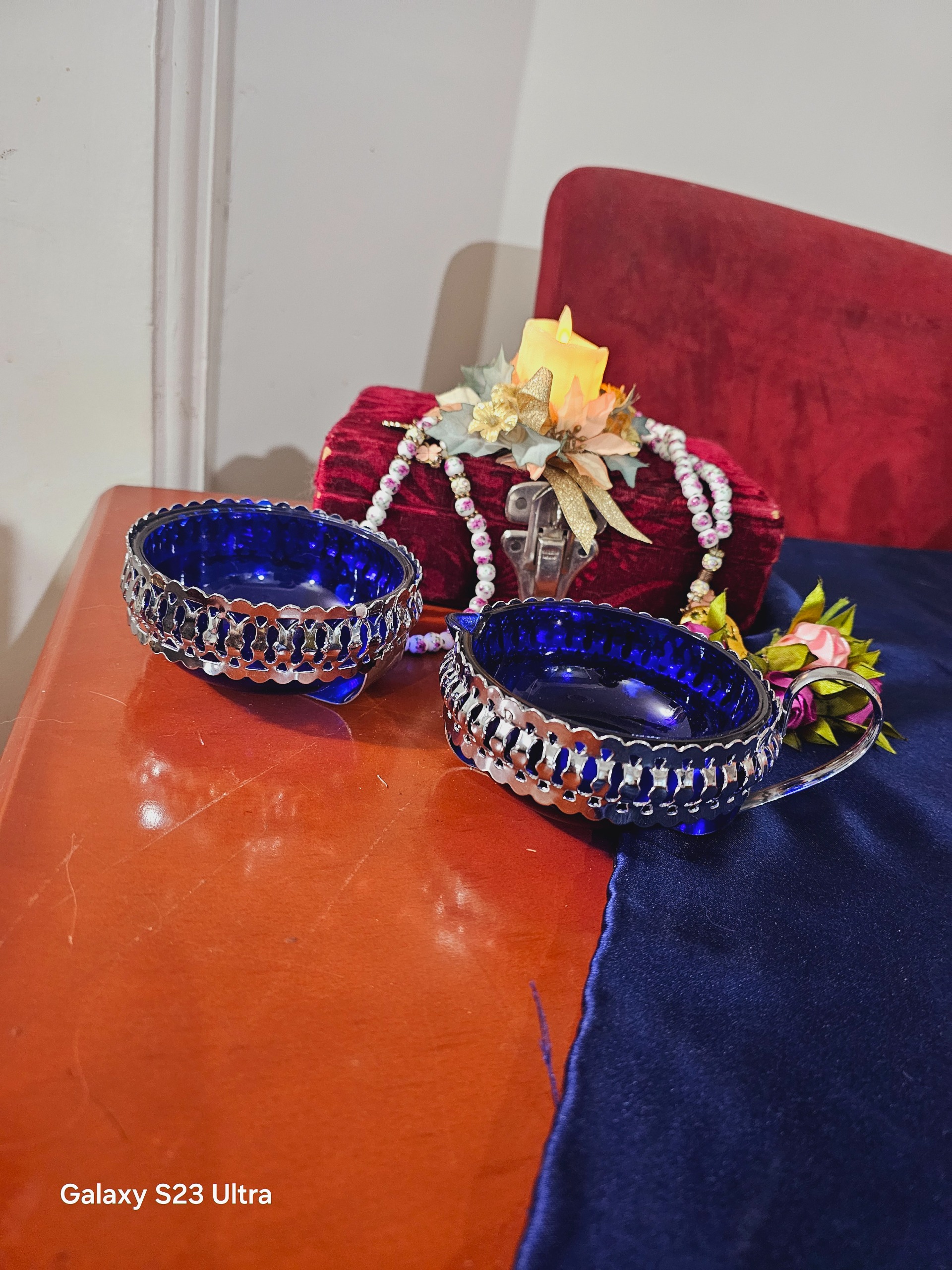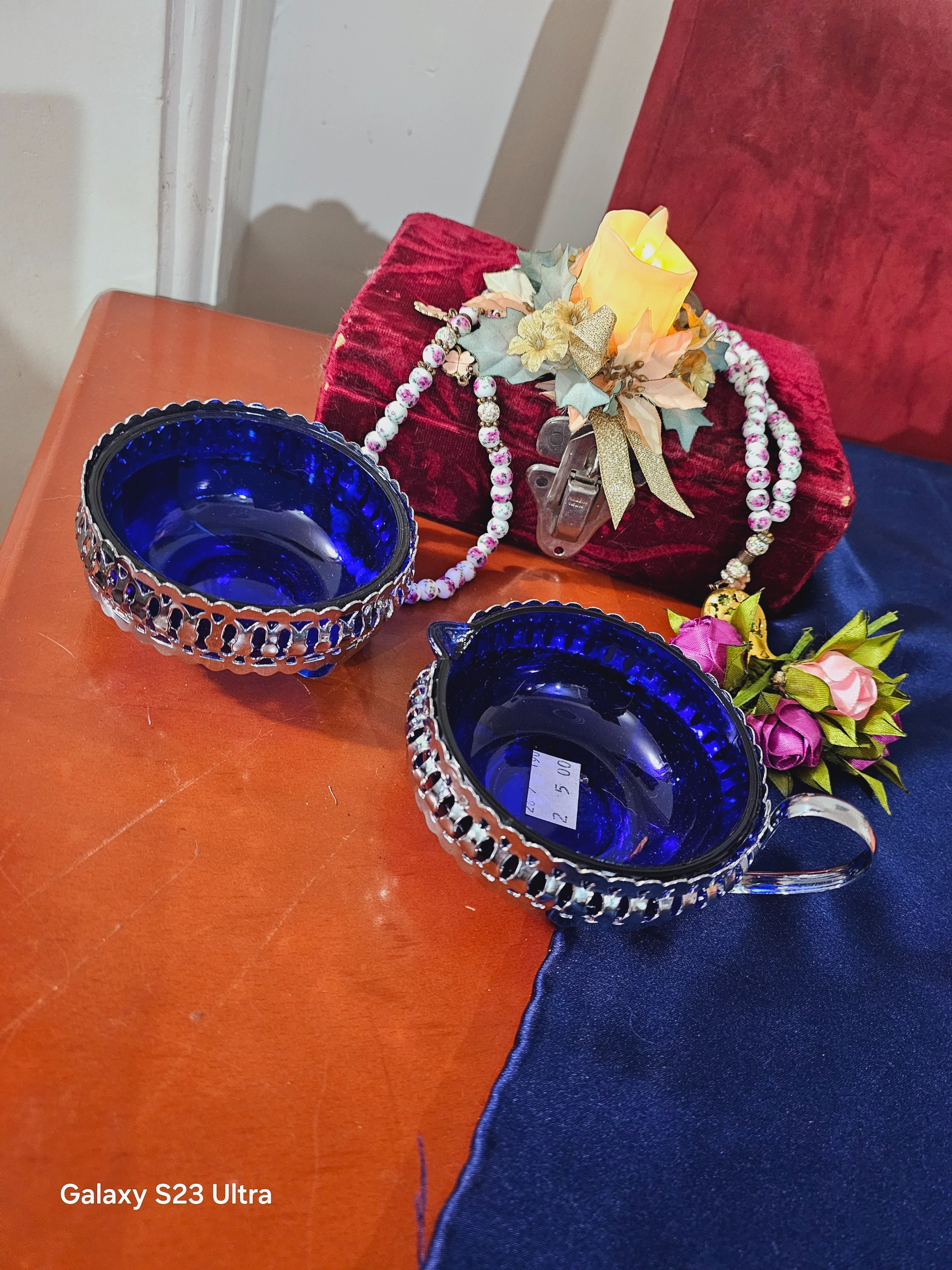 دوعدد چاشنی خوری سیلور با کریستال آبی کبالت نو نو مخصوص جهزیه