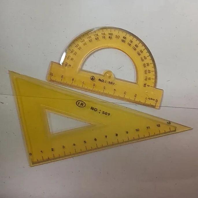 دو عدد خطکش یا همون گونیا و نقاله معروف زرد عسلی دهه شصت اصل اصل و برند بسیار بسیار قدیمی و درحد نایاب/با هر خرید یک عدد گونیا و یک عدد نقاله داده میشود