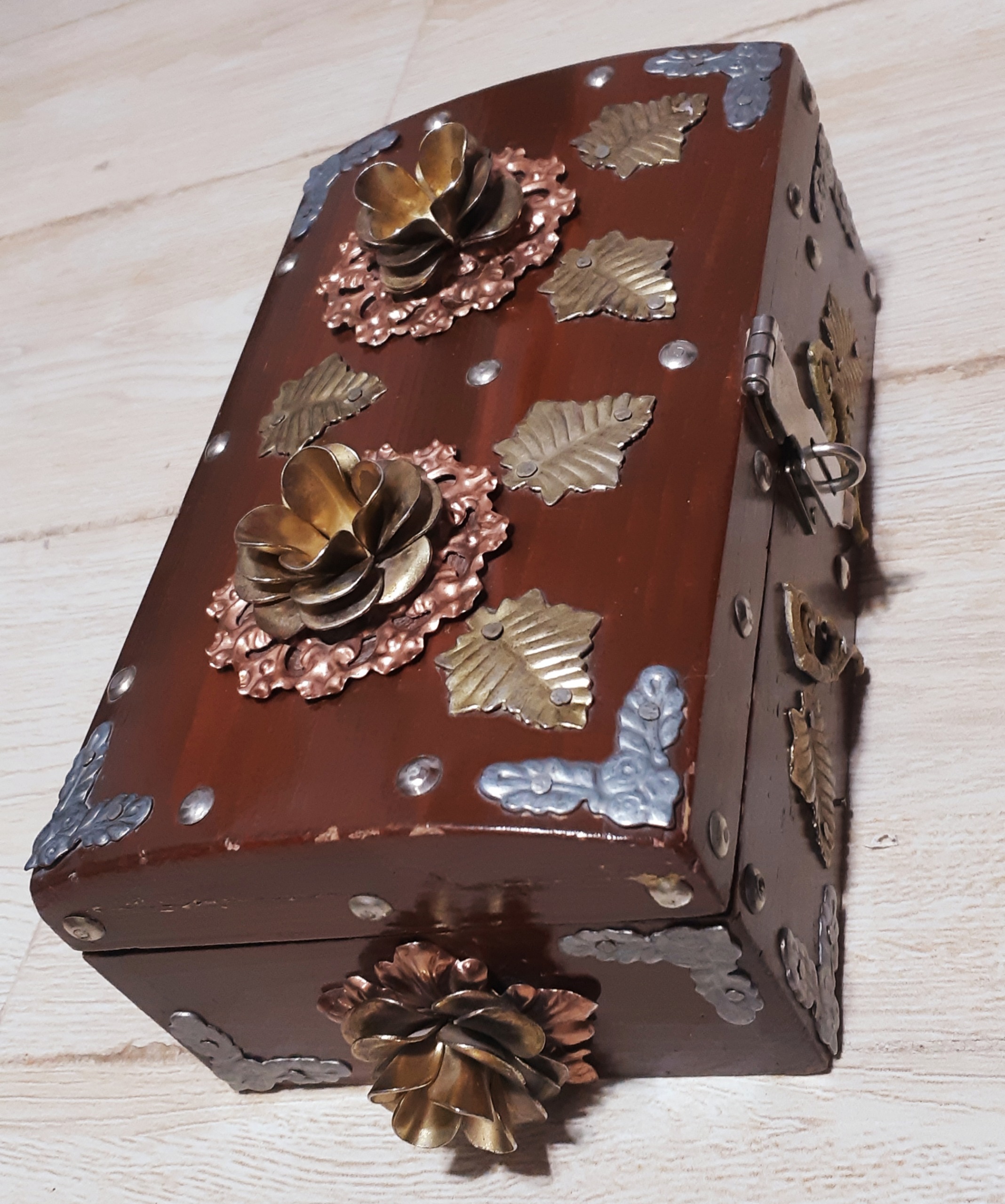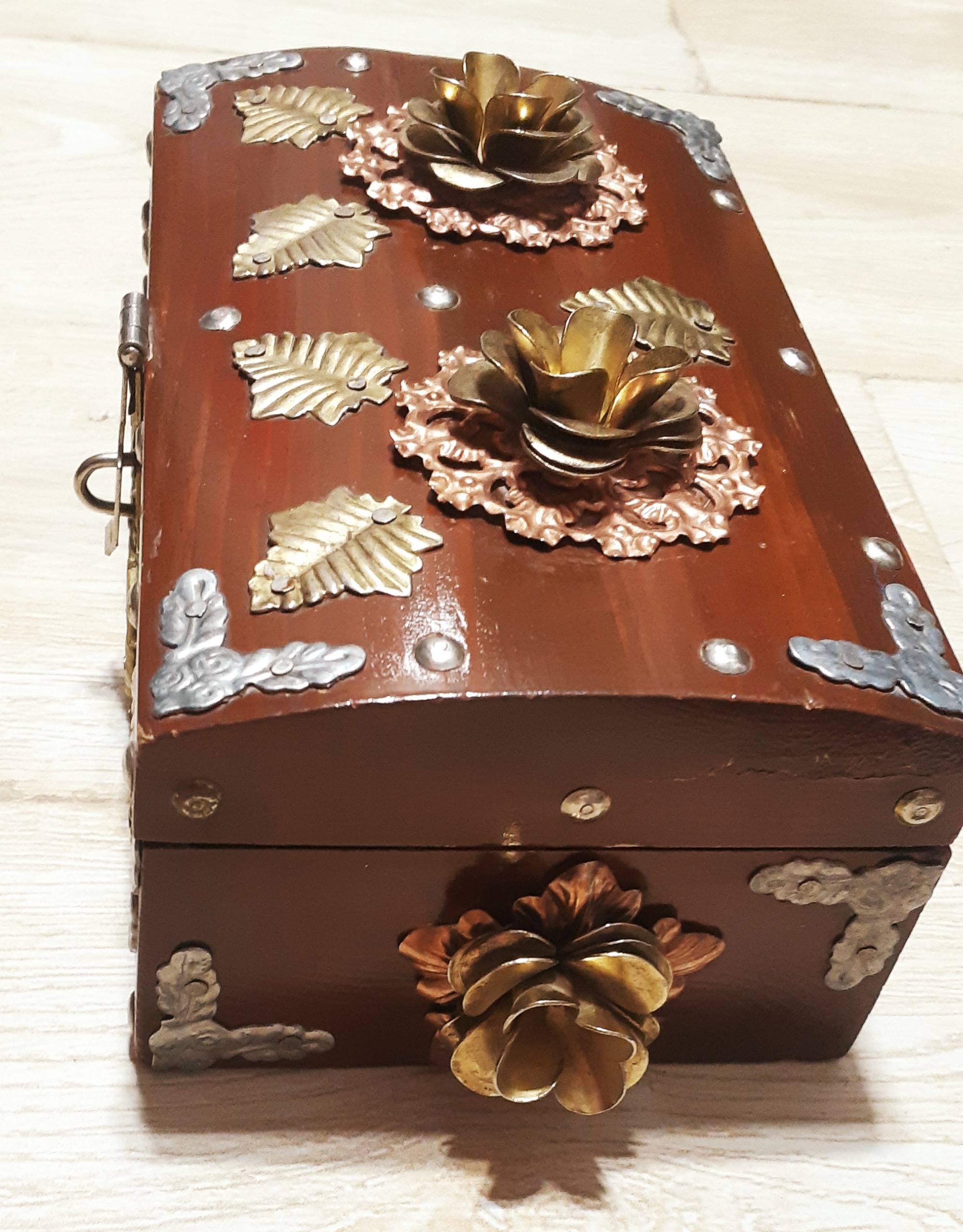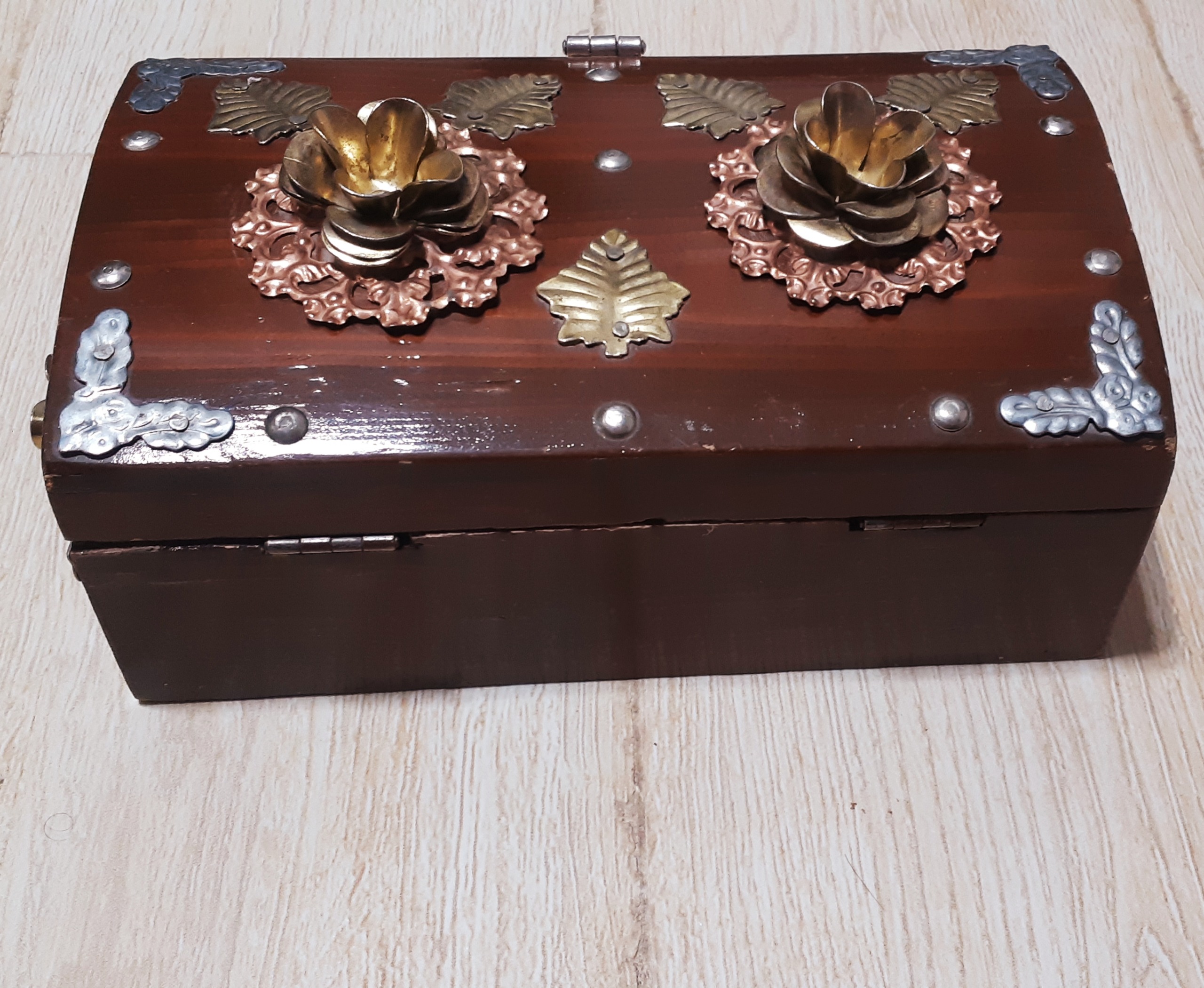 صندوقچه چوبی جواهرات قدیمی نایاب با قفل برنجی