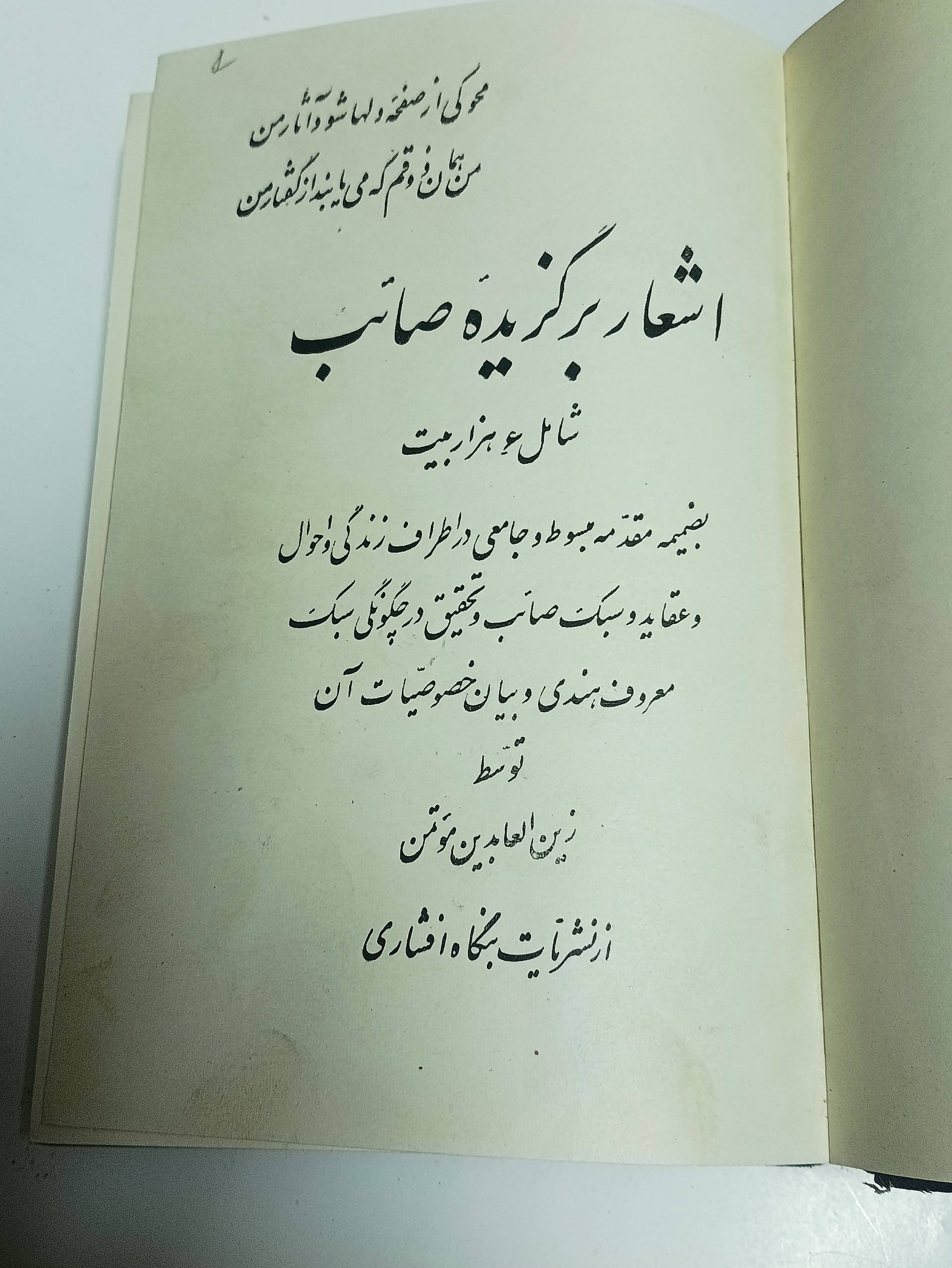 اشعار برگزیده دیوان صائب و مثنوی شمع جمع شبلی 1320