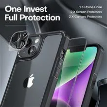 قاب محافظ آیفون 14 با 2 عدد شیشه 9H با کیفیت بالا می توانید از صفحه گوشی شما در برابر خراش و شکستگی محافظت کند اما لمس فوق العاده نازک، راحت و حساس باعث می شود احساس کنید هیچ چیز روی صفحه نیست.