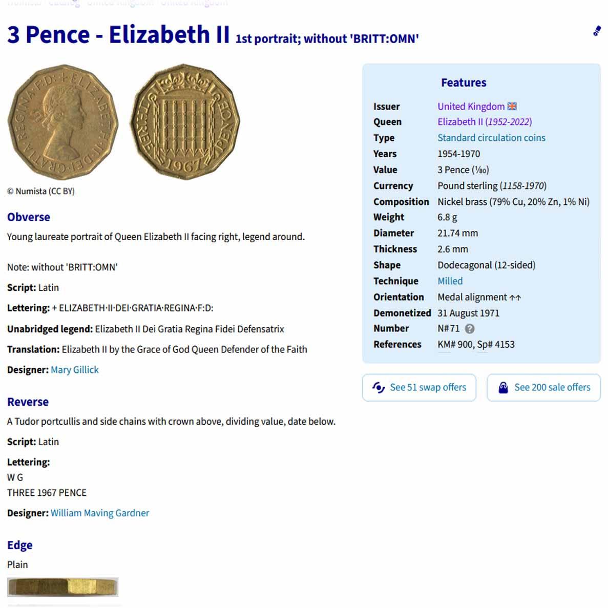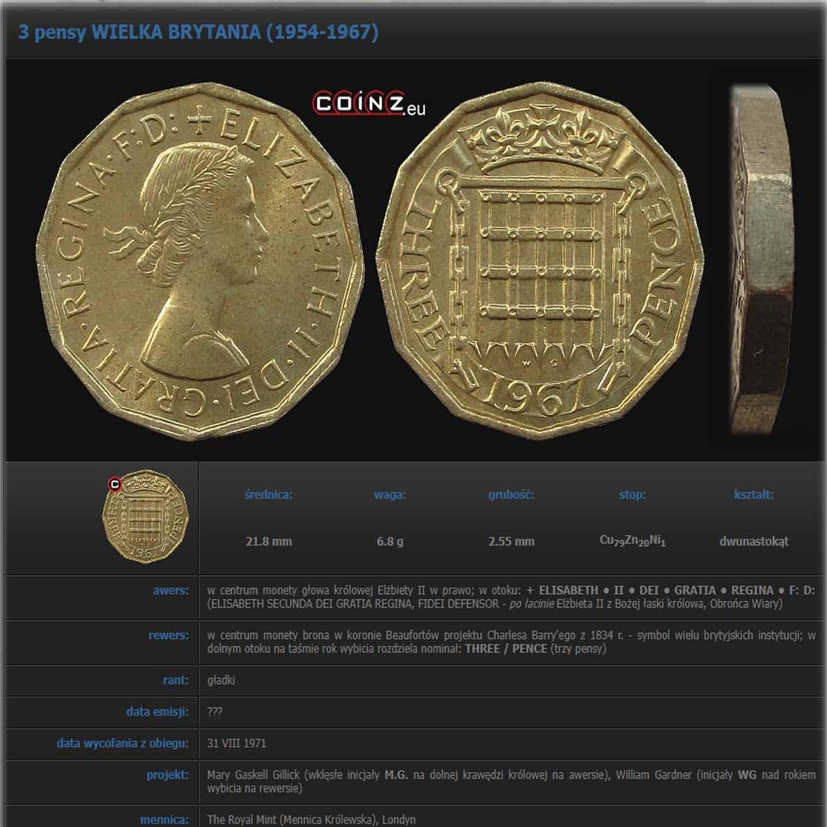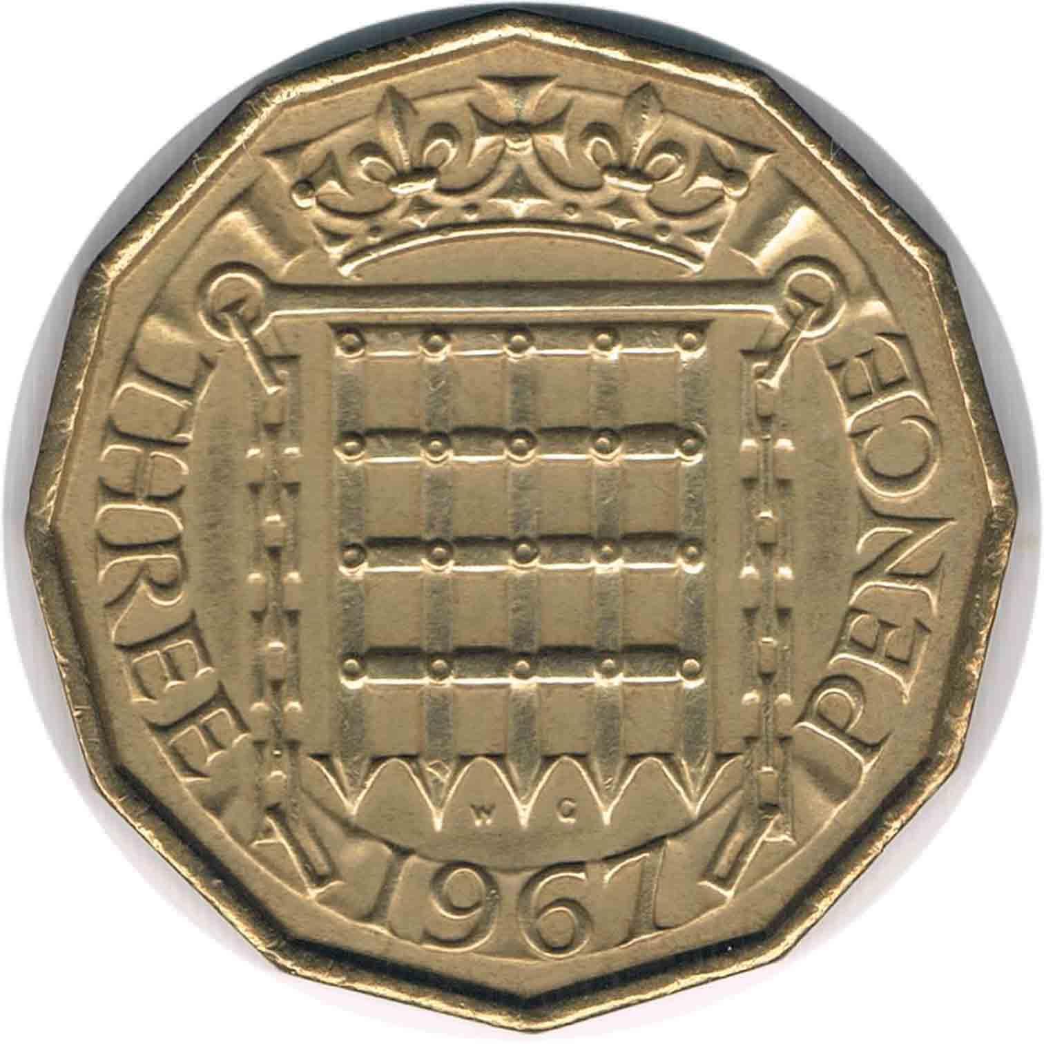 سکه 3 پنس بریتانیا 1967 الیزابت دوم (کمیاب)