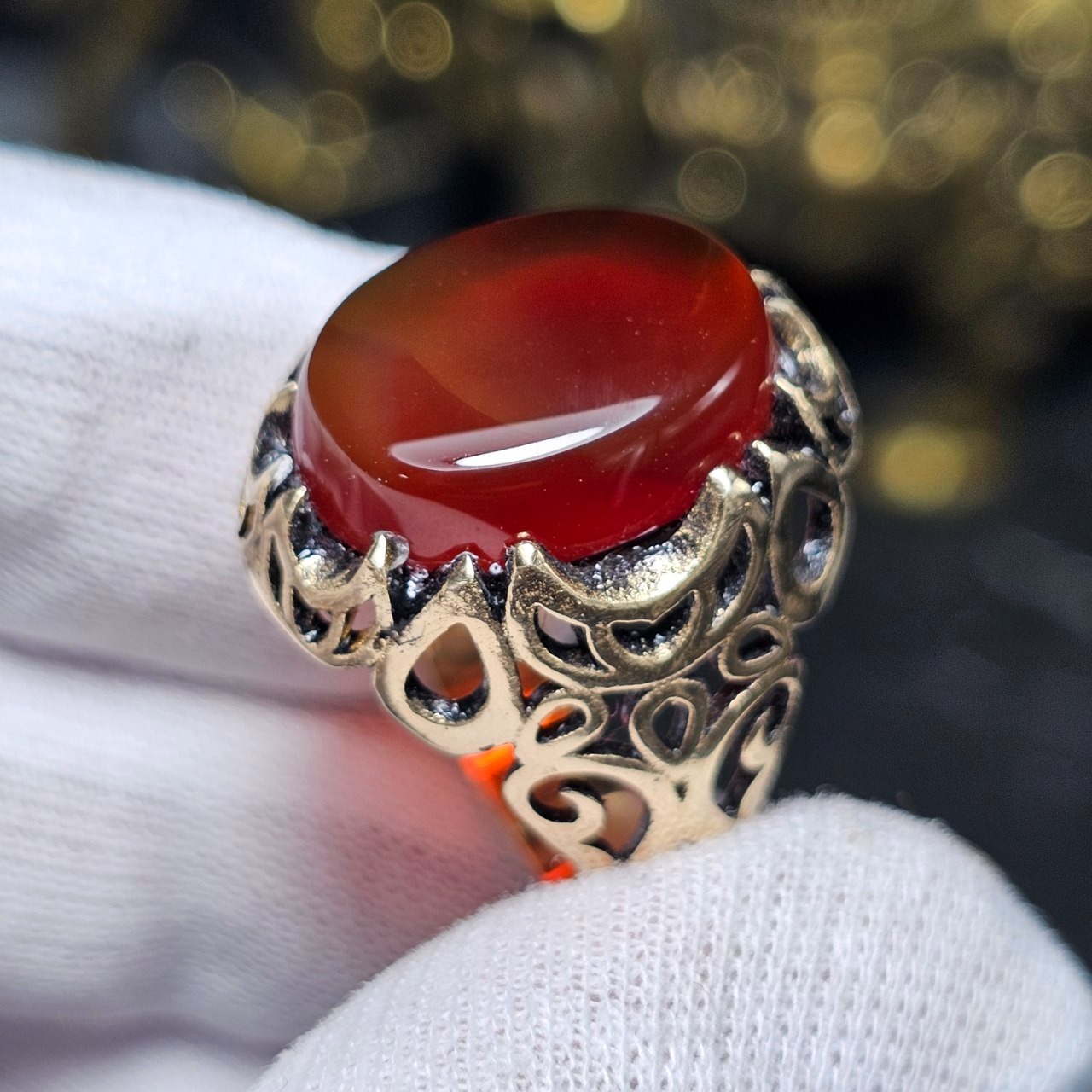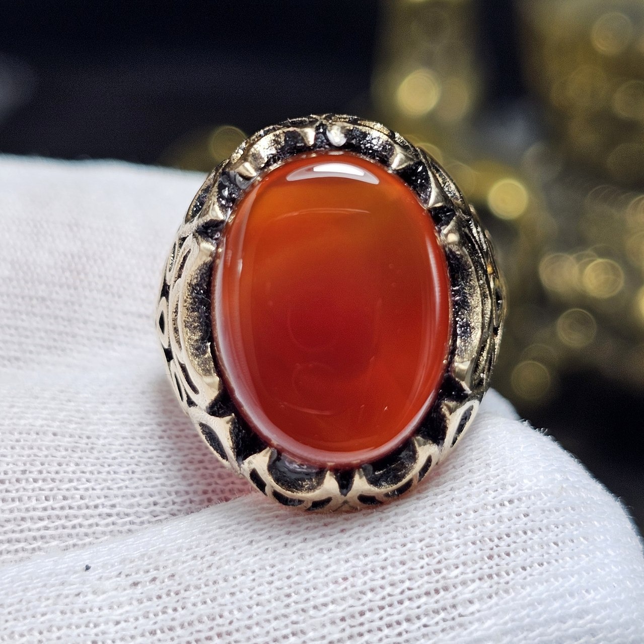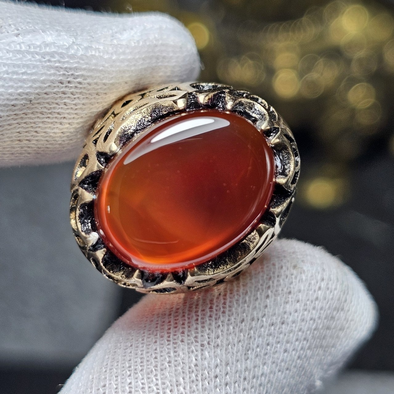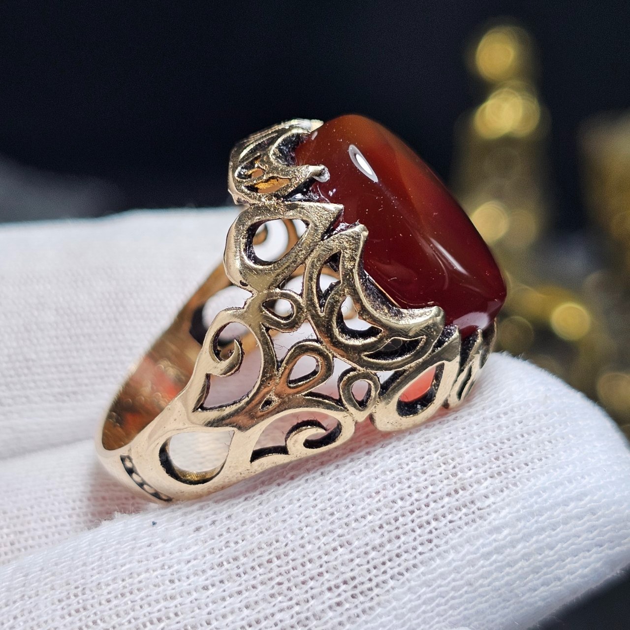 انگشتر طلا روس با سنگ عقیق معدنی کد 37059