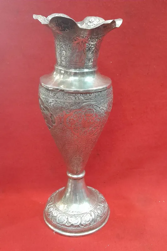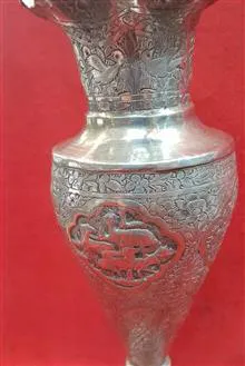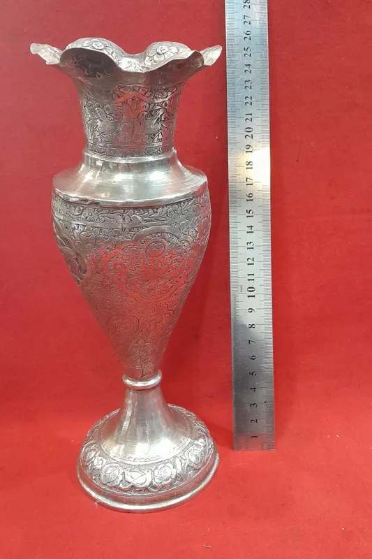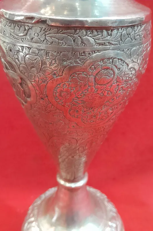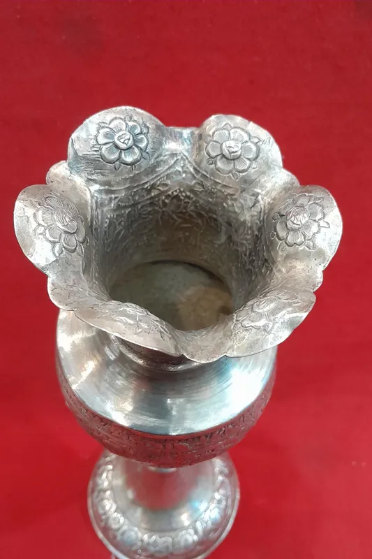 گلدان نقره قلم گل مرغ قدیمی پهلوی کلکسیونی و آنتیک