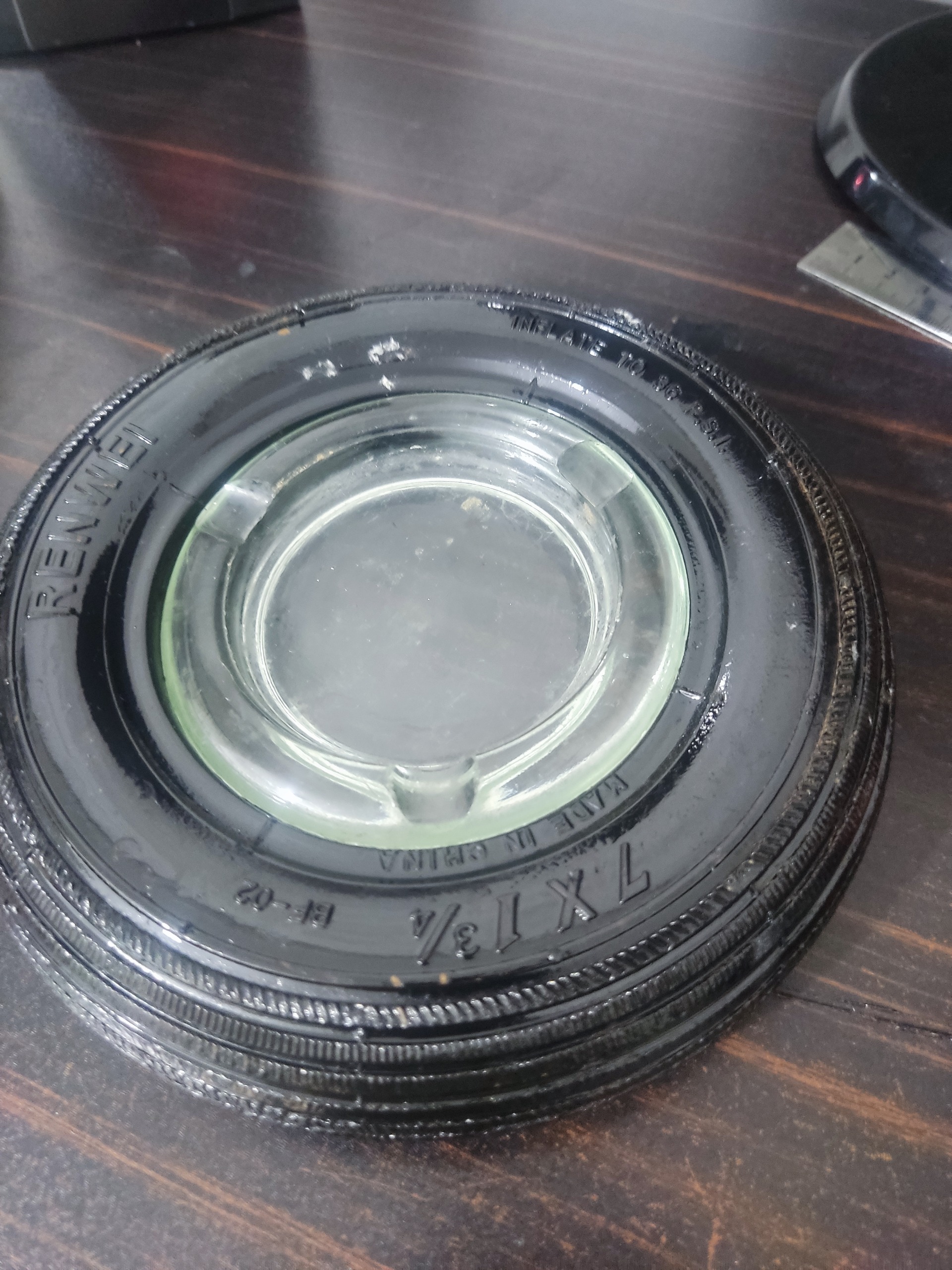 لاستیک کوچک مناسب برای زیر سیگاری یا دکوری لاستیک سالم هست ولی رنگ شده با اسپری مشکی که بعضی قسمتها رنگ ریزی مشص هست شیشه ای که داخلش هست مال یک زیر سیگاری دیگه ای که در فروشگاه موجوده این کالا برابر عکس اول بدون شیشه ارسال میشه فقط لاستیک تنها بدون شیشه عکس دوم را زوم کنید خیلی کم لبه داخلی پوستش رفته ولی مشکلی نداره