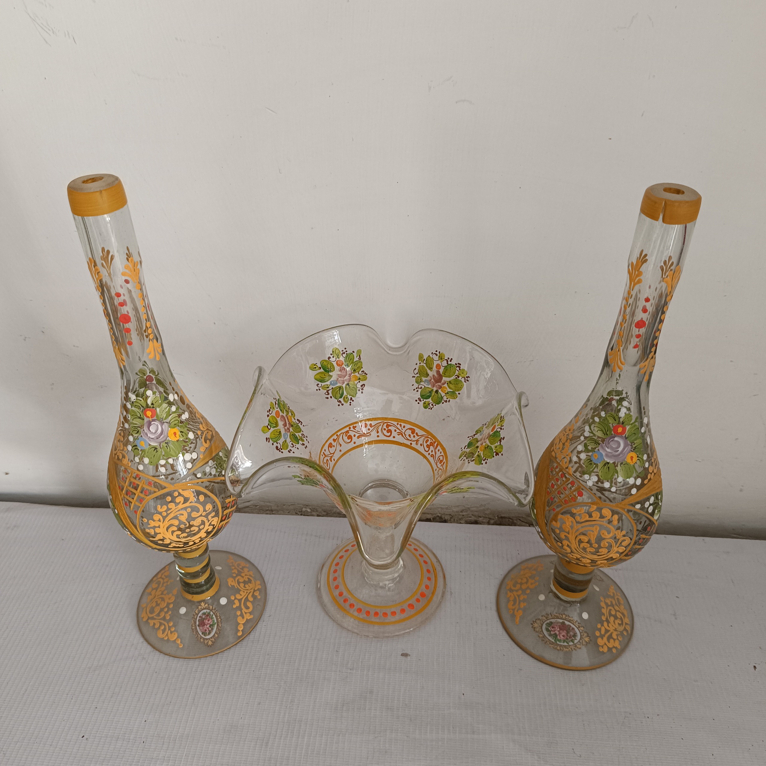 جفت گلابزن تراشدار و نقاشی دست ویک عدد شکلات خوری