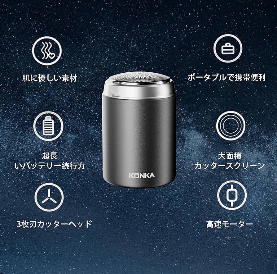 ریش تراش برقی فوق العاده کوچک مردانهKONKA KS-Min8، اصلاح، چرخشی، 3 تیغه داخلی، جمع و جور، ضد آب IPX6، قابل شستشو، استفاده خشک و مرطوب، قابل شارژ با USB، نوع Type-C، ریش تراش حمام، سبک، کوچک