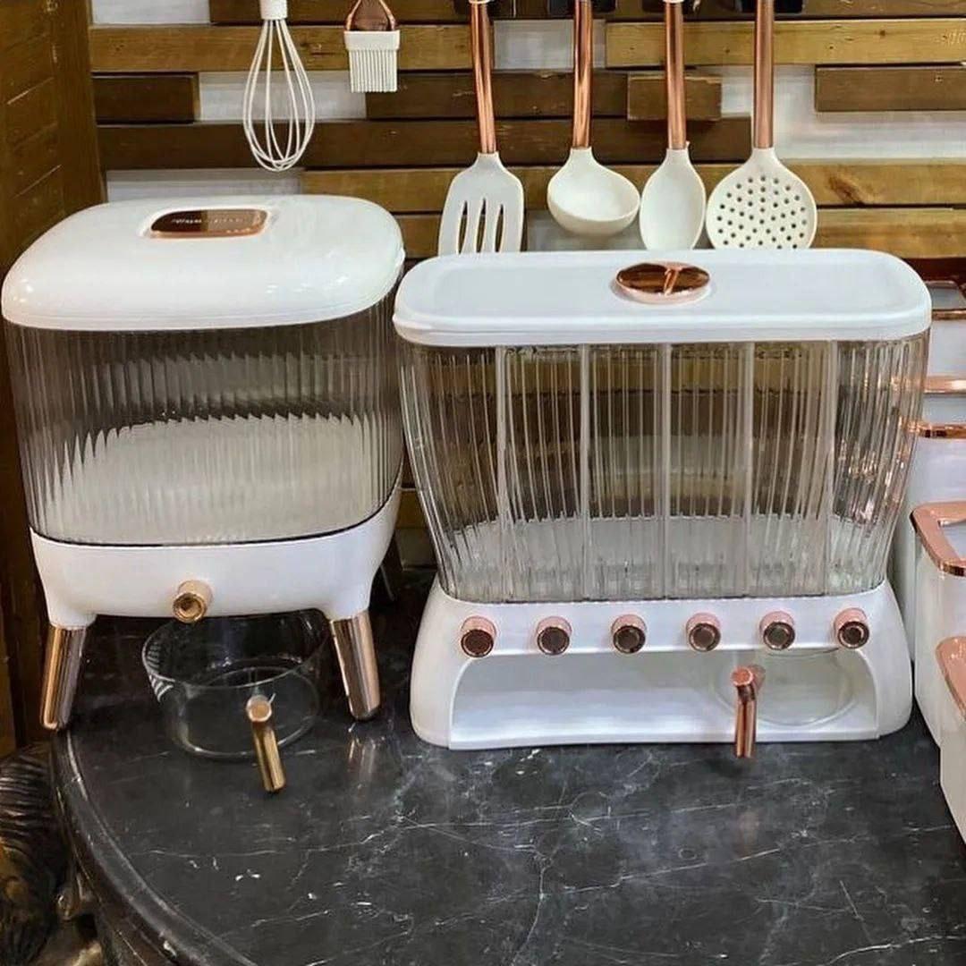 جا برنجی لوکس پایه طلایی ظروف نگه دارنده و نظم دهنده امروزه طرفدران زیادی دارند، یکی از این محصولات جا برنجی لوکس پایه طلایی است. با توجه به گنجایش مناسب و ظاهر لوکسی که دارد از پر فروش ترین محصولات نگه دارنده برنج است.