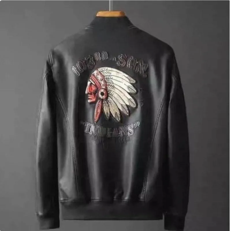 کاپشن چرم و داخل آستر خز داره گرممیکنه و طرح سرخپوستی عم جلو هم پشت کاپشن هست چرمش عالی و مارک FASHIONکلاسیکال عالی هست و روی تن کامل میشینه و چروک نمیشه از دست ندید و وارداتی هست وجنس عالی و اندازه ایکس لارج با 2 ایکس لارج یک سانت فرق دارد هم به ایکس لارج و 3 ایکس لارج میخوره حتی اگه زیر کت چرم لباس خیلی گلفت وبزرگ نت نکنید به 3 ایکس لارج هم میخوره همرو امتحان کردیم و ممنون میشم از فروشگاه ما دیدن کنید