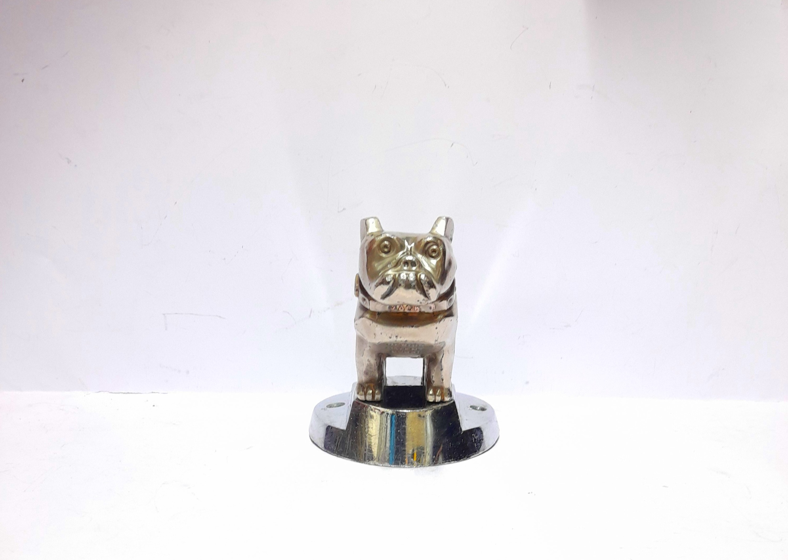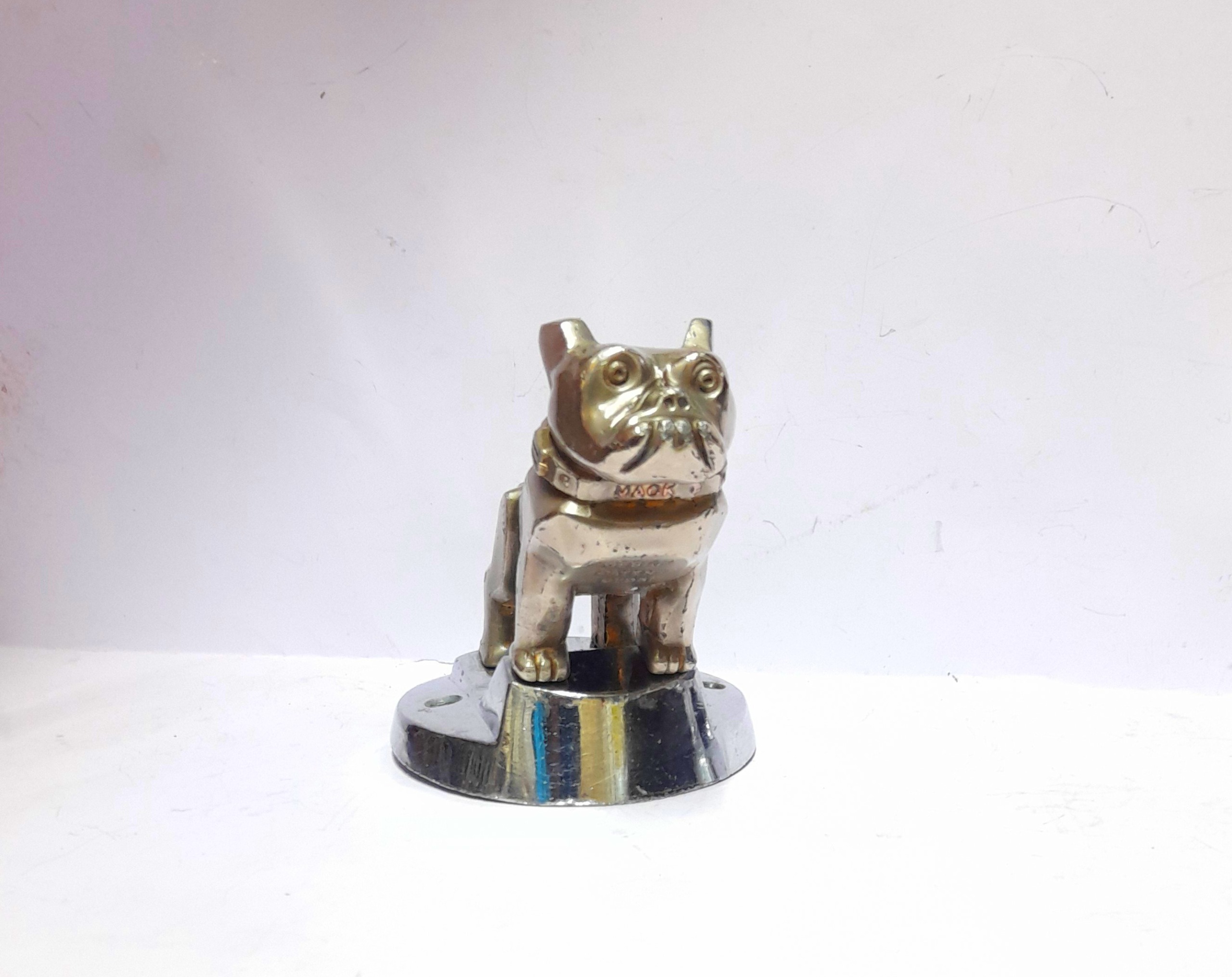 سگ روی کاپوت کامیون ماک زرد رنگ، به مرور زمان کم رنگ تر شده. آنتیک کلکسیونی کمیاب