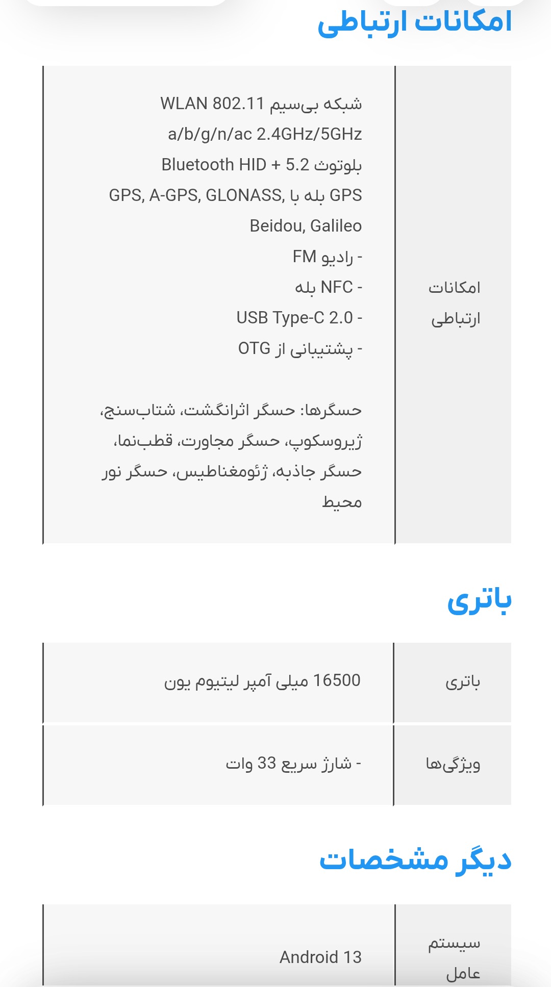 | اندازه صفحه نمایش (اینچ) | 6.53 اینچ |