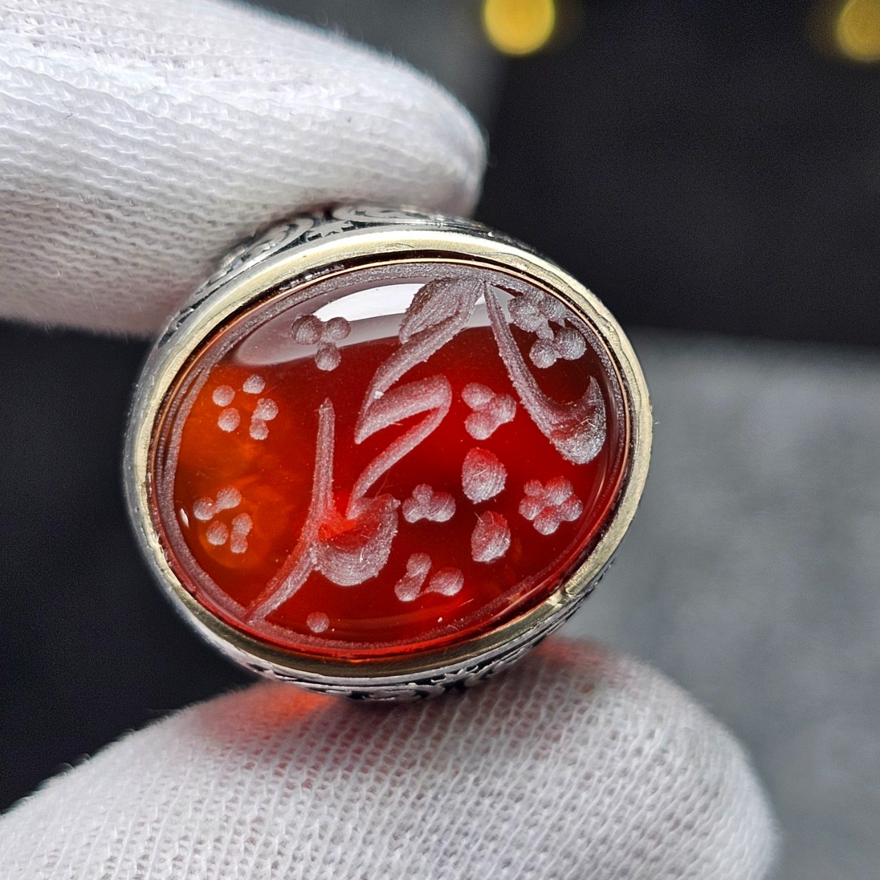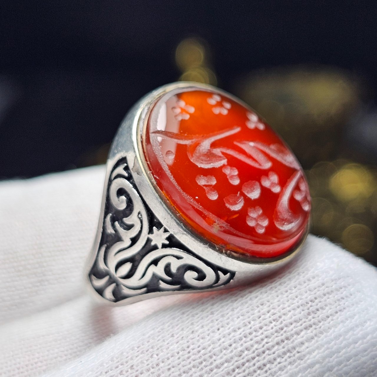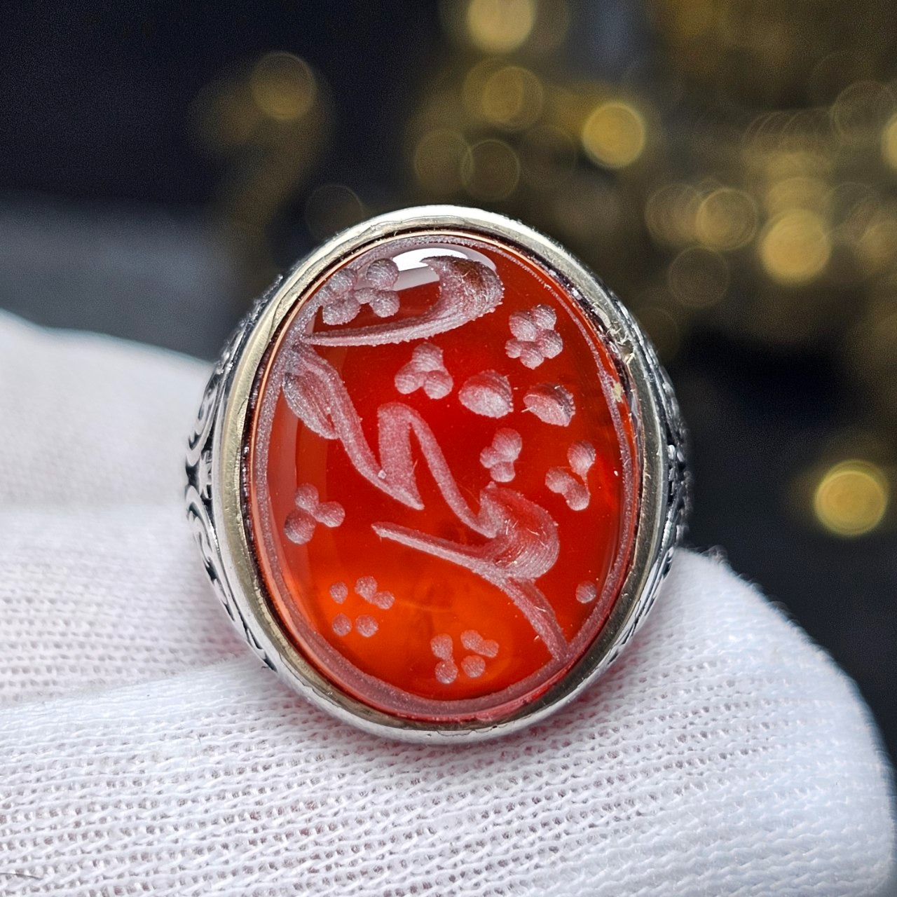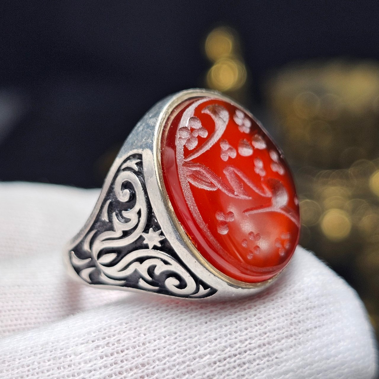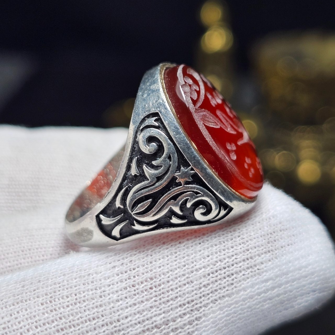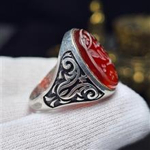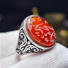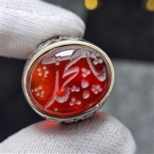 انگشتر نقره روس با سنگ عقیق سرخ معدنی خط دست 37019