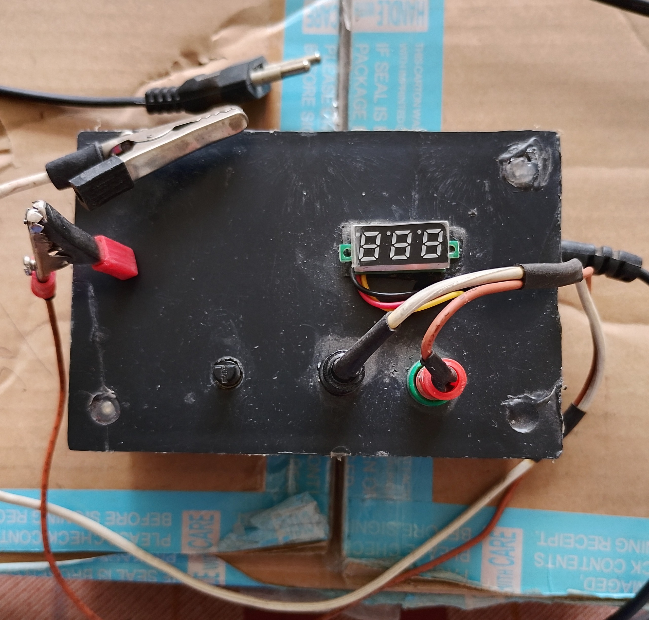 آداپتور دست ساز بوده و به وسیله چند ماژول و آداپتور لپ تاپ و نمایشگر ساخته شده با برق 220 ولت ورودی و در خروجی متغیر صفر تا 12 ولت.است