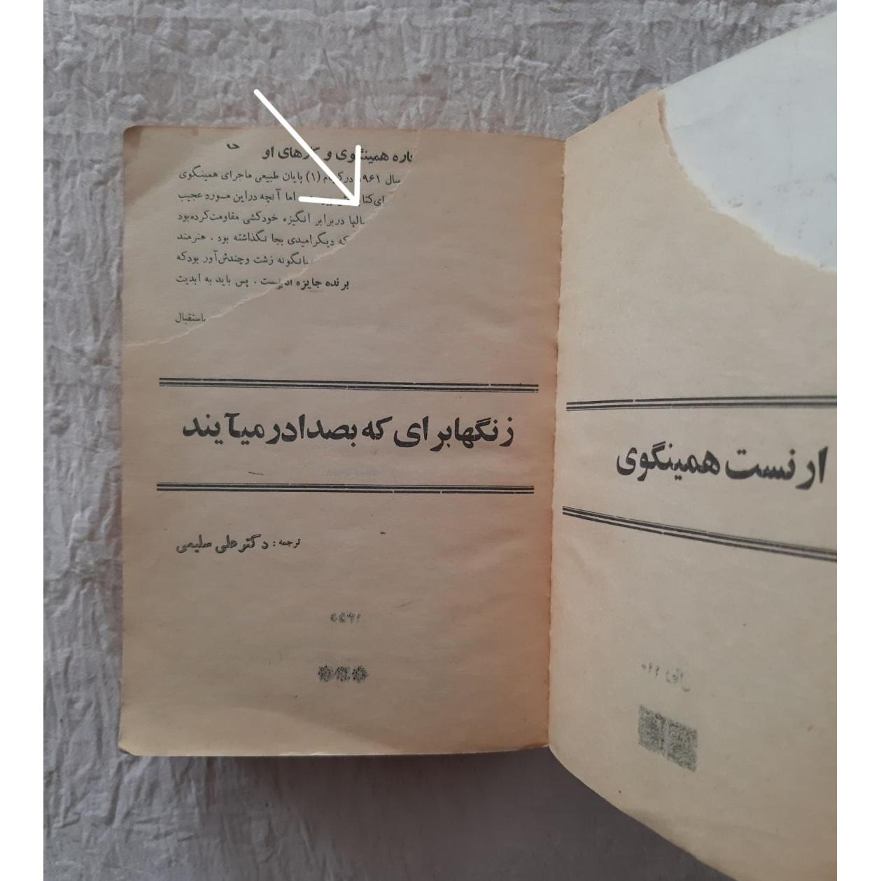 زنگها برای که بصدا در میآیند، پارگی دارد جلد کهنه