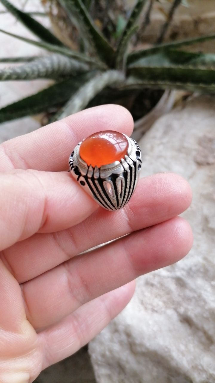 انگشتر نقره عقیق یمنی دستساز ومهردار سنگ کاملا ابدار سایز 66تا67 وزن نزدیک 17 گرم ابعاد نگین 17 در13 قیمت 4800
