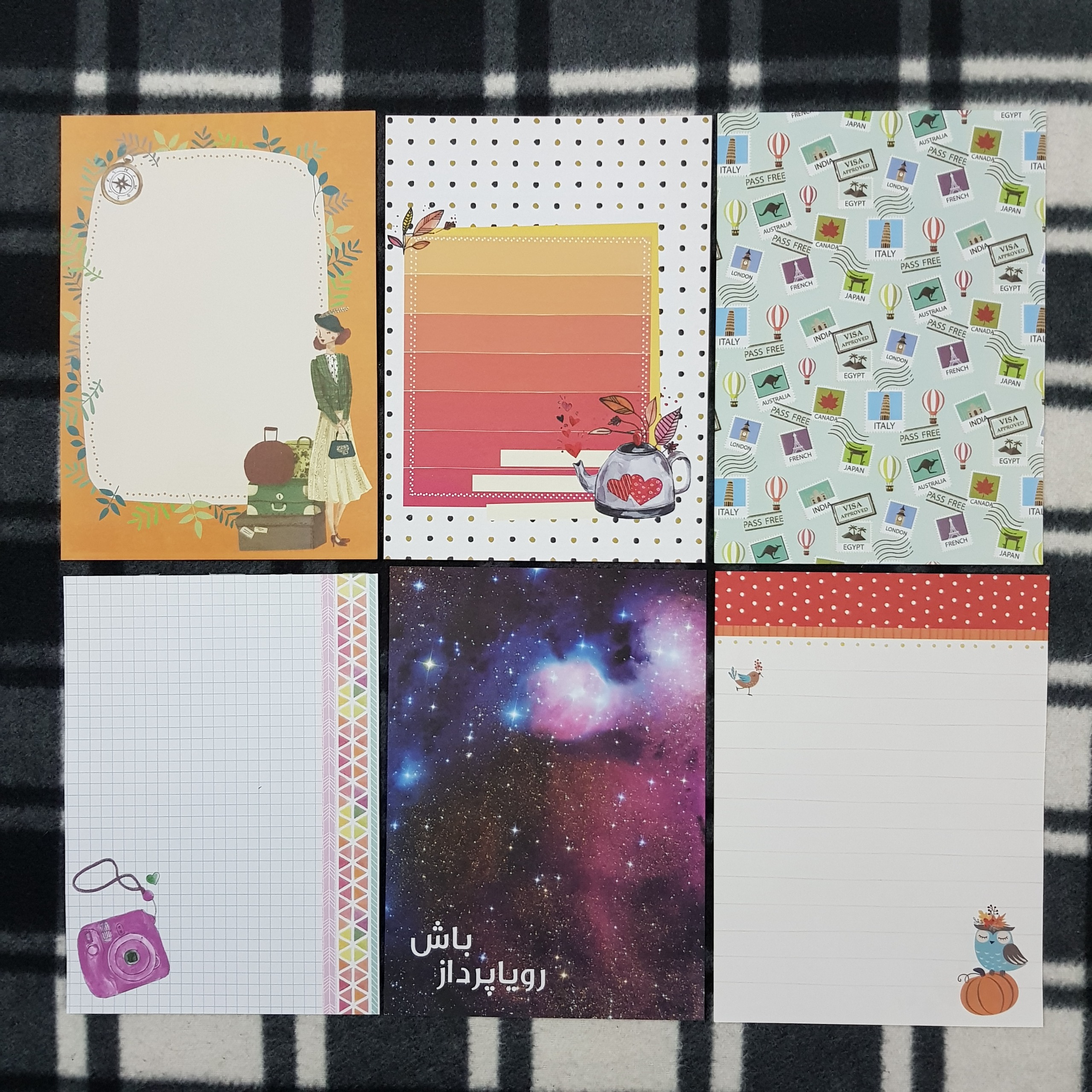 ابعاد هر ورق حدود A5 (حدود 14 در 19.5 سانتیمتر)