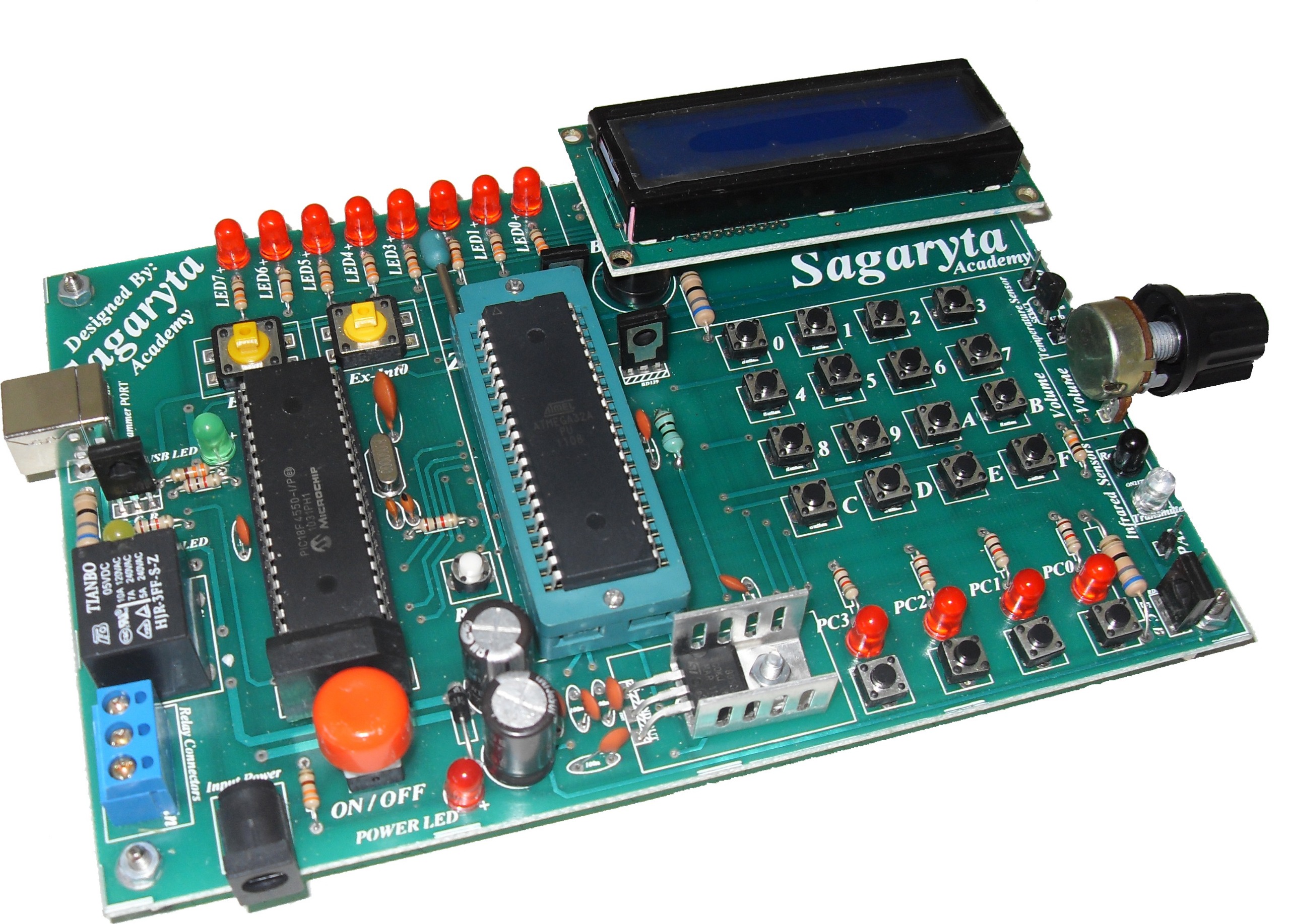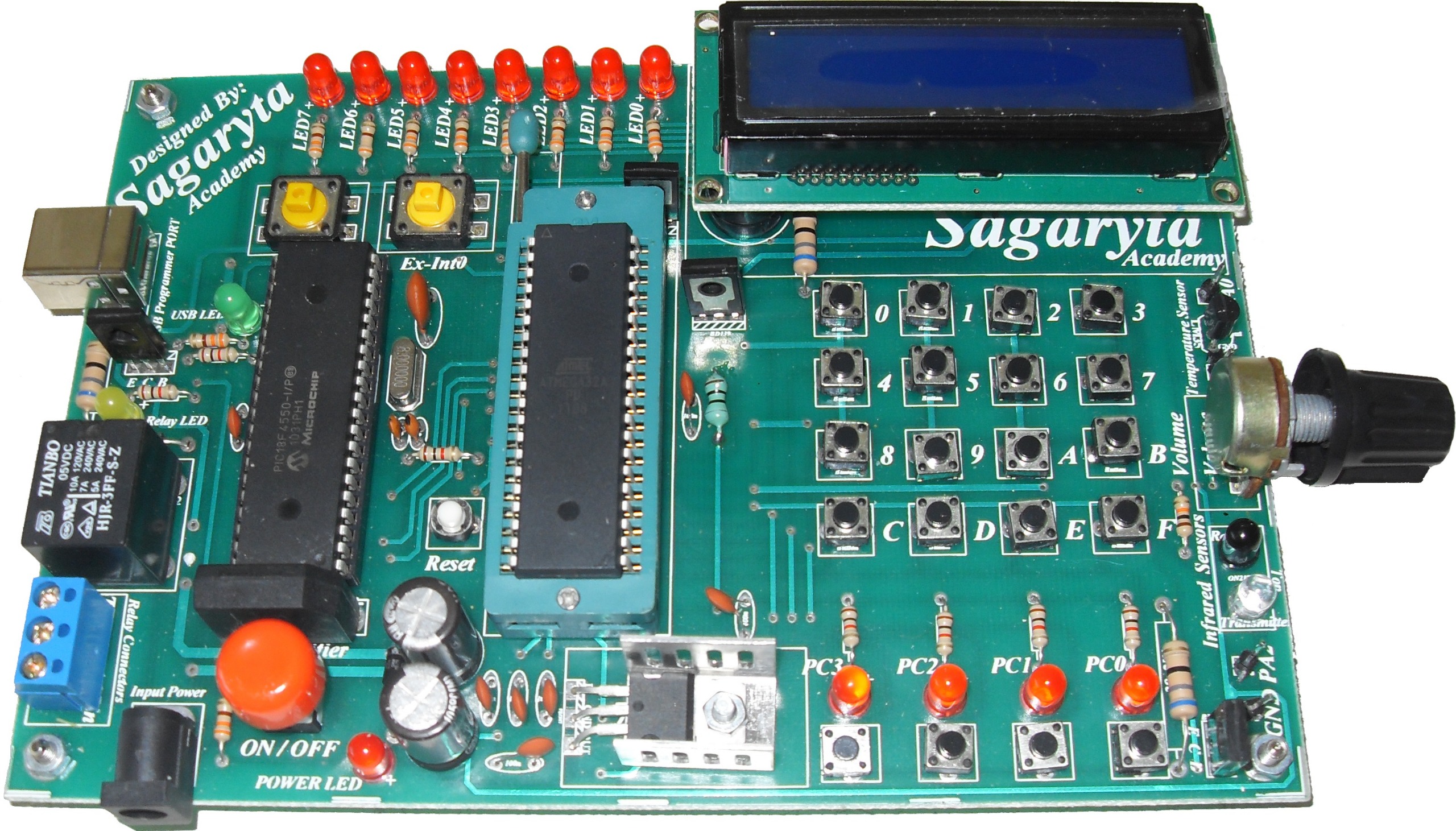 برد آموزشی میکروکنترلر ATMEGA32 از سری AVR به همراه آموزش زبان C با نرم افزار CodeVisionAVR و پروگرامر USB بدون نیاز به درایور با قابلیت کارکرد برروی ویندوزهای XP,7,10,11