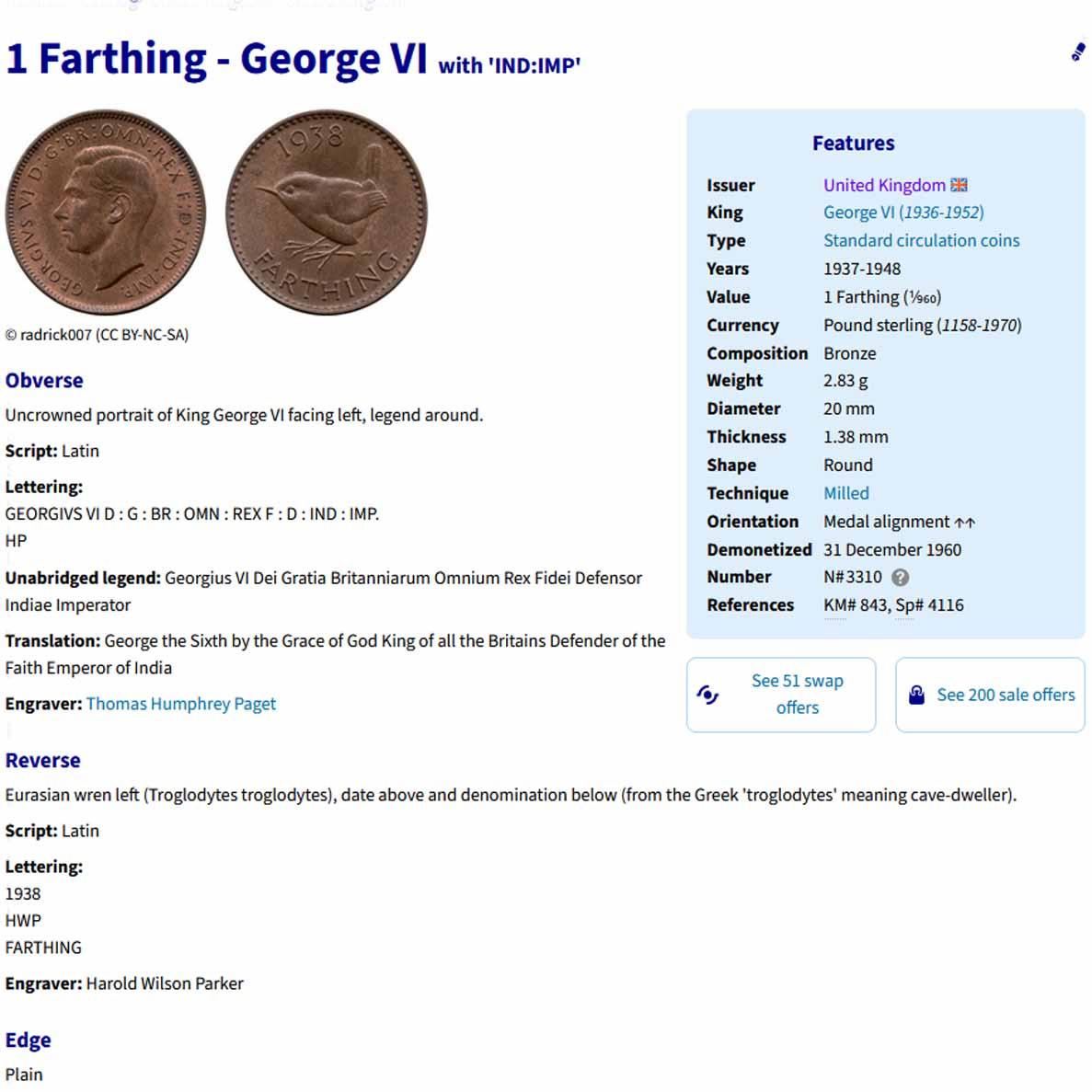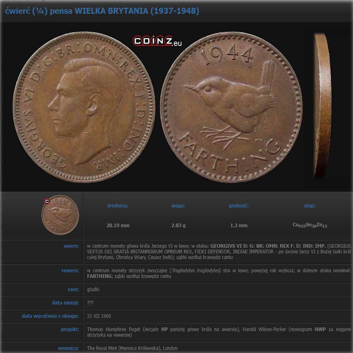سکه فارتینگ بریتانیا 1946 جرج ششم (نایاب)