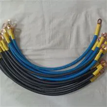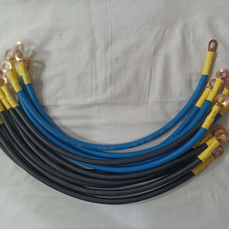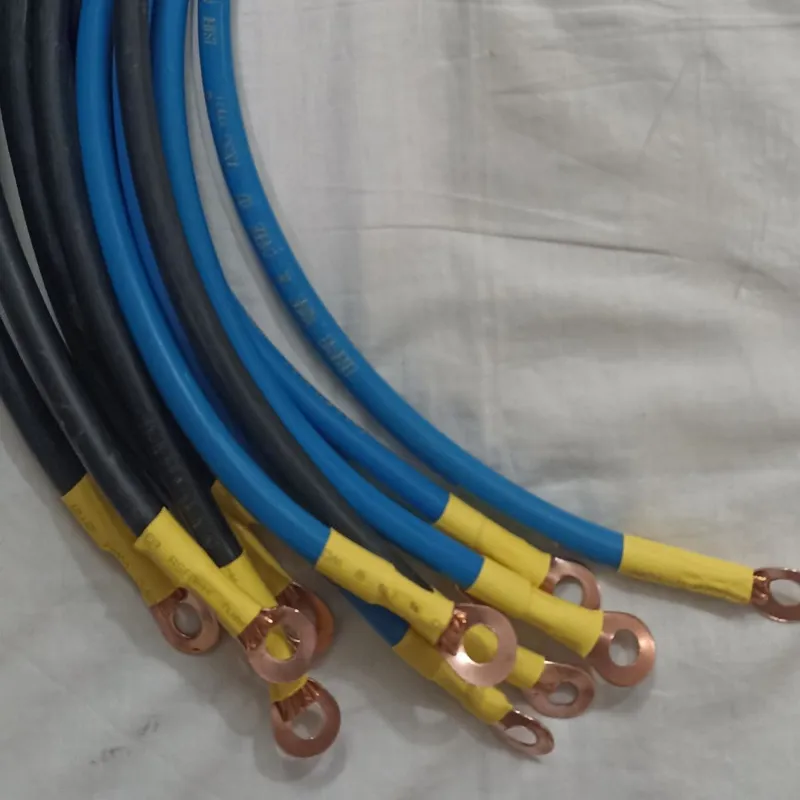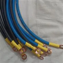کابل ضخیم برق منفی شماره 35 رنگ مشکی یا آبی از جنس مس خالص دارای دوسر کابلشو سوراخ دار به طول 50 سانتیمتر دارای وایرشو زردرنگ بر روی محل پرس کابلشو