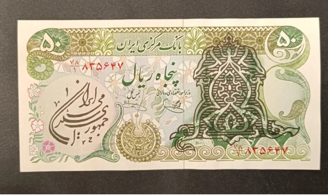 اسکناس 50 ریالی 5 تومان محمدرضا با سورشار ژ جمهوری