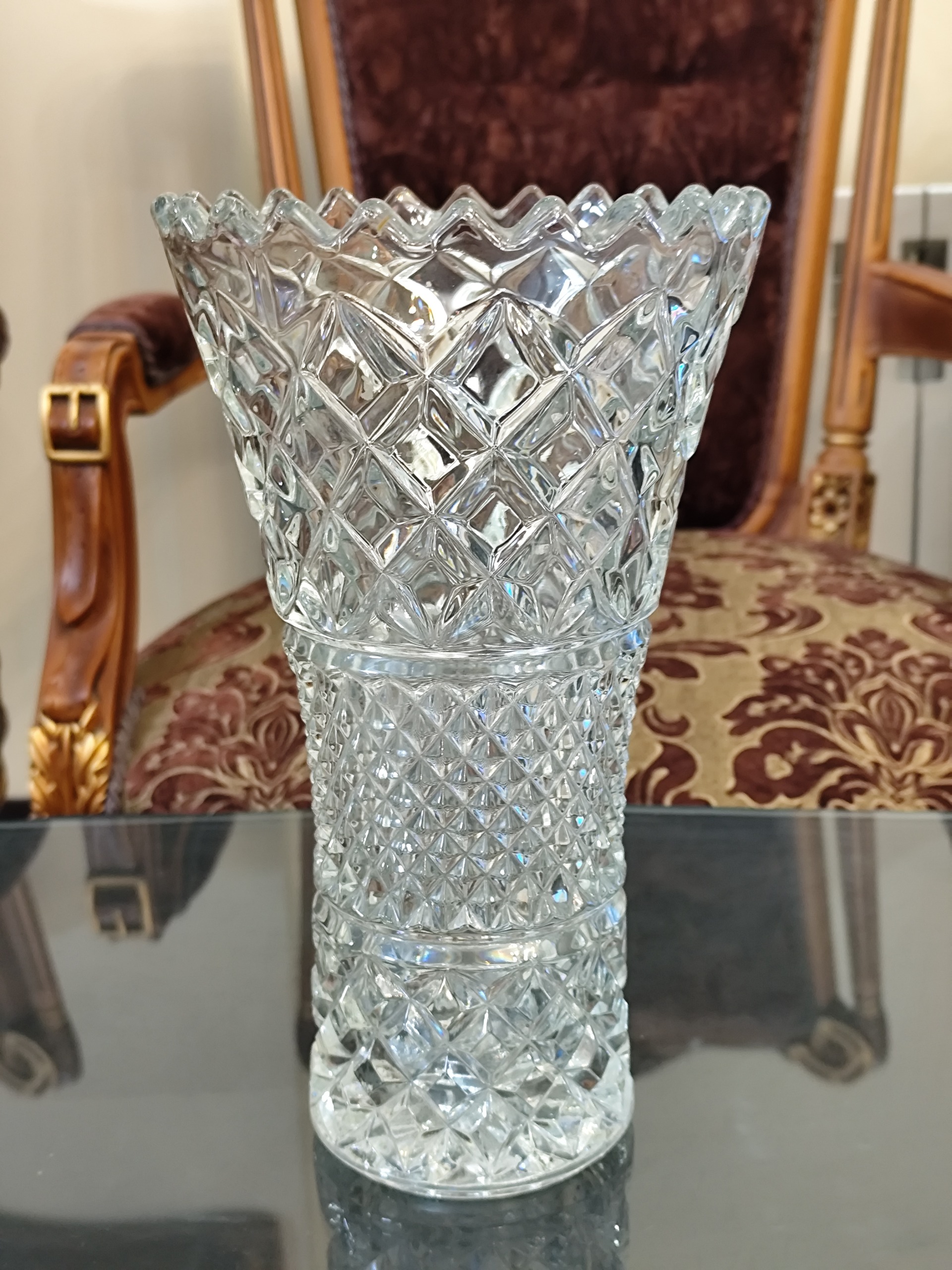 گلدان خشتی آمریکایی قدیمی و کمیاب بزرگترین سایز ارتفاع 30 سانت قطر دهنه 17 سانت