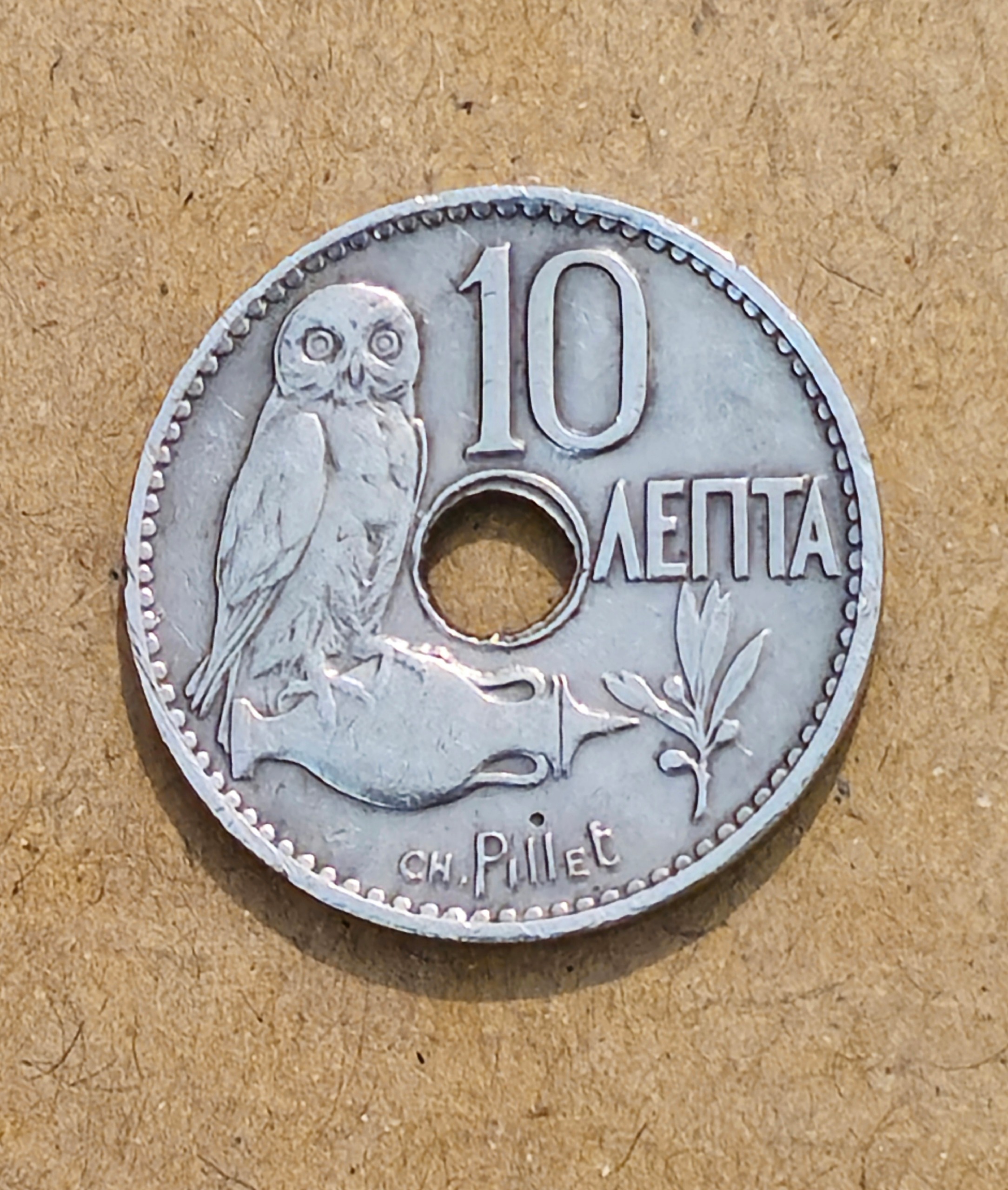 عدد و نوشته «10 ΛΕΠΤΑ» نیز با ظرافتی مثال زدنی حک شده اند.