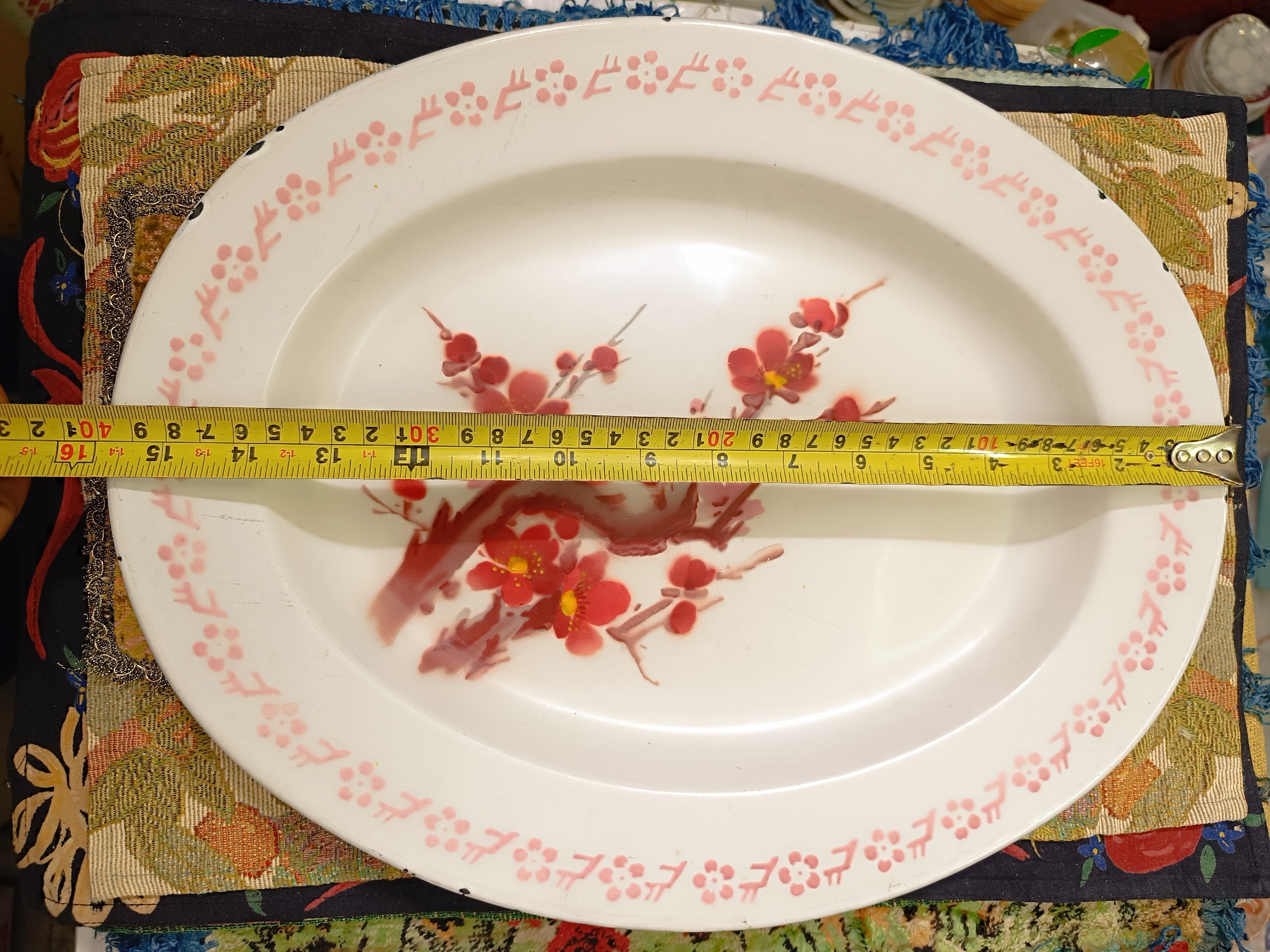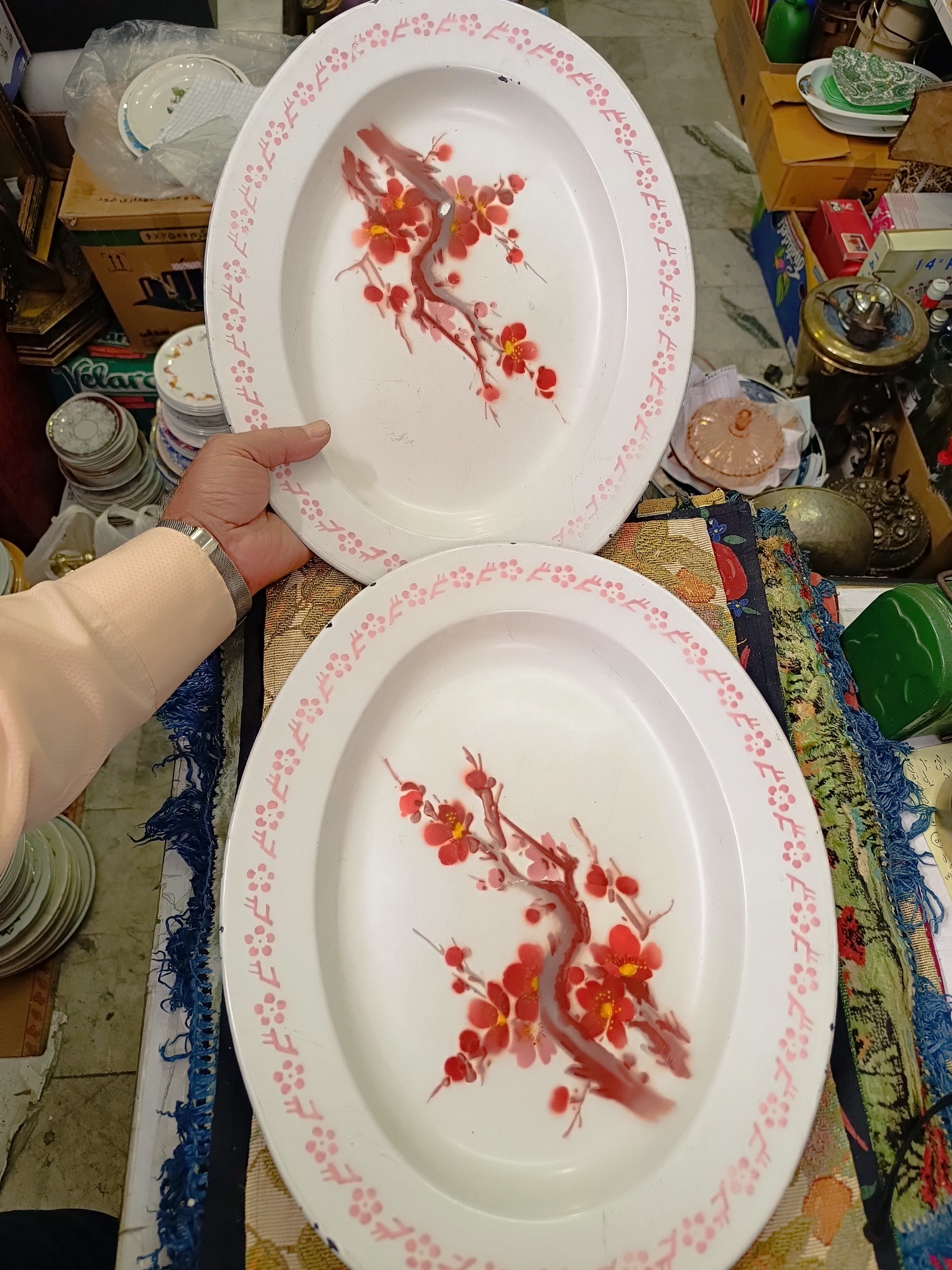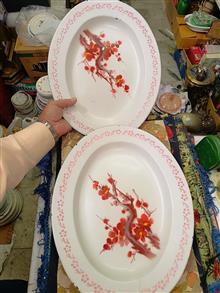 یک جفت دیس لعابی خارجی ، قدیمی و نوستالژیک ، یکی از دیس ها روی قسمت تنه یک درخت یه پریدگی لعاب داره ، کیفیت و ابعاد مطابق تصویر ، فروش بصورت جفتی