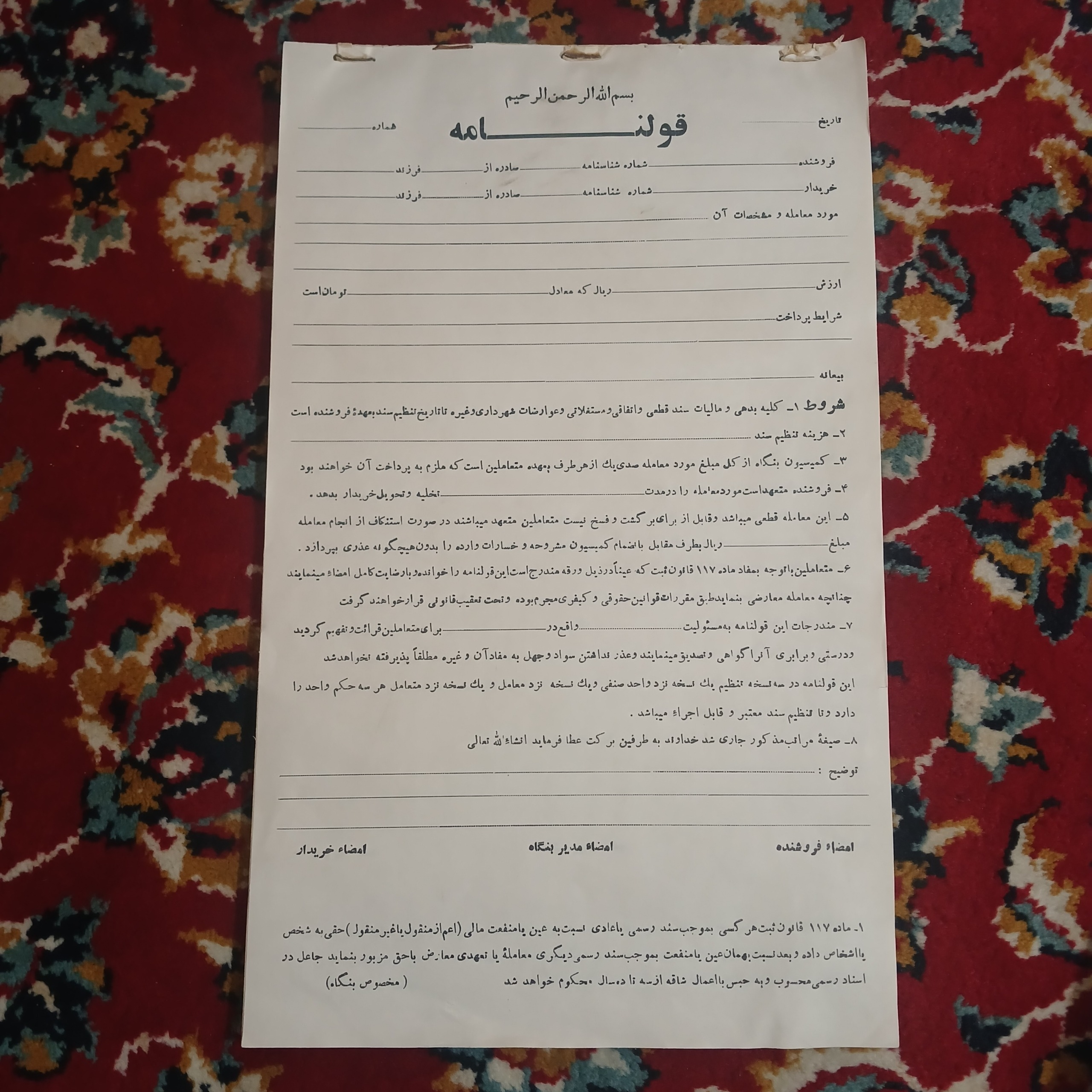 • با احترام به دیگر فروشندگان محترم سایت، با توجه به اینکه این قولنامه ها (پک کامل 3 برگ پشت سر هم) هستند، قیمت خیلی در مقایسه با سایرین مناسب و ارزان است.