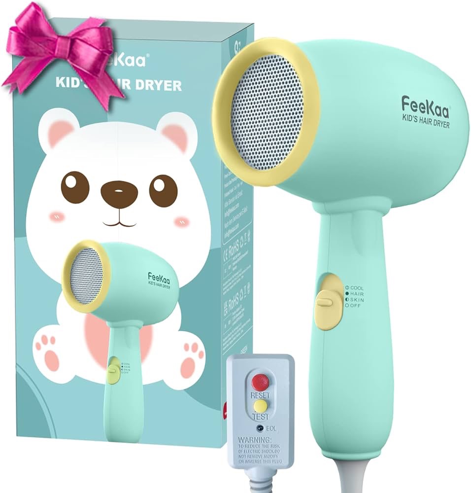 سشوار مو - شبکه توری متراکم پشتی از انگشتان کوچک کودک محافظت میکند. طراحی سشوار کوچک برای کودکان و دختران با قفل ایمنی کودک و سیستم خاموش شدن خودکار در هنگام گرم شدن بیش از حد، کمتر از 52/125 درجه فارنهایت. سشوار بچهگانه سایز کوچک با قدرت 500 وات، گرمای ملایمی