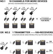 انتقال از راه دور: این سیستم گیتار بیسیم از نرخ نمونهبرداری 24 بیت/48 کیلوهرتز، محدوده پاسخ فرکانسی 30 تا 16 کیلوهرتز بهره میبرد و میتواند به برد انتقال 164 فوت، بدون افت یا تأخیر سیگنال، با وضوح فوری، تُن خالص و تأخیر کمتر از 1 میلیثانیه، دست یابد.