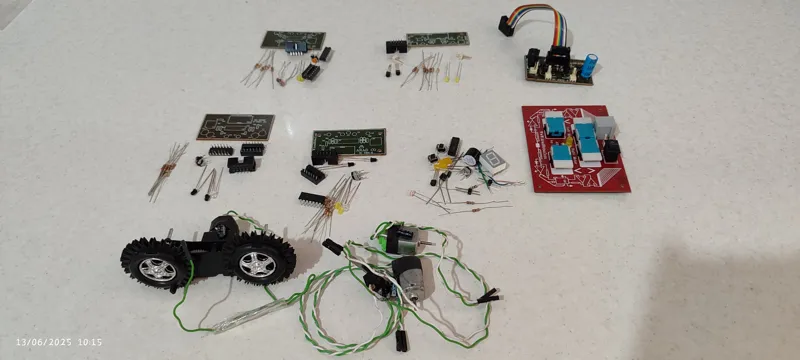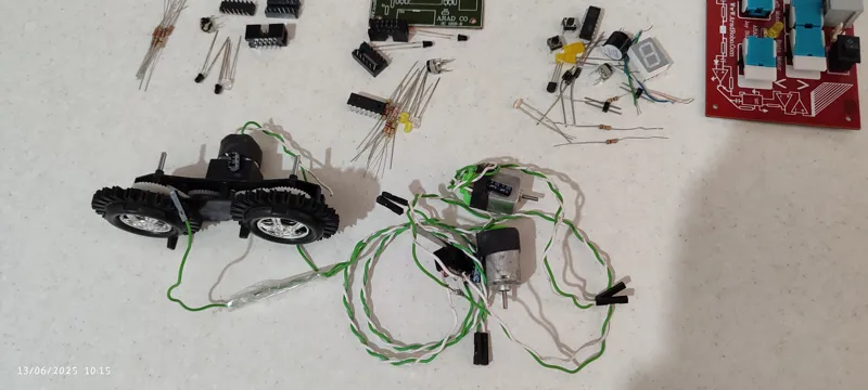 قطعات ساخت ماشین رباتیک طبق تصاویر قطعات داخل بسته ها نو هستند و هیچ کدوم روی فیبر مونتاژ نشدند،در ضمن موتور گیربکس ها هیچ کدوم تست نشدند و نمیدونم سالم هستند یا نه