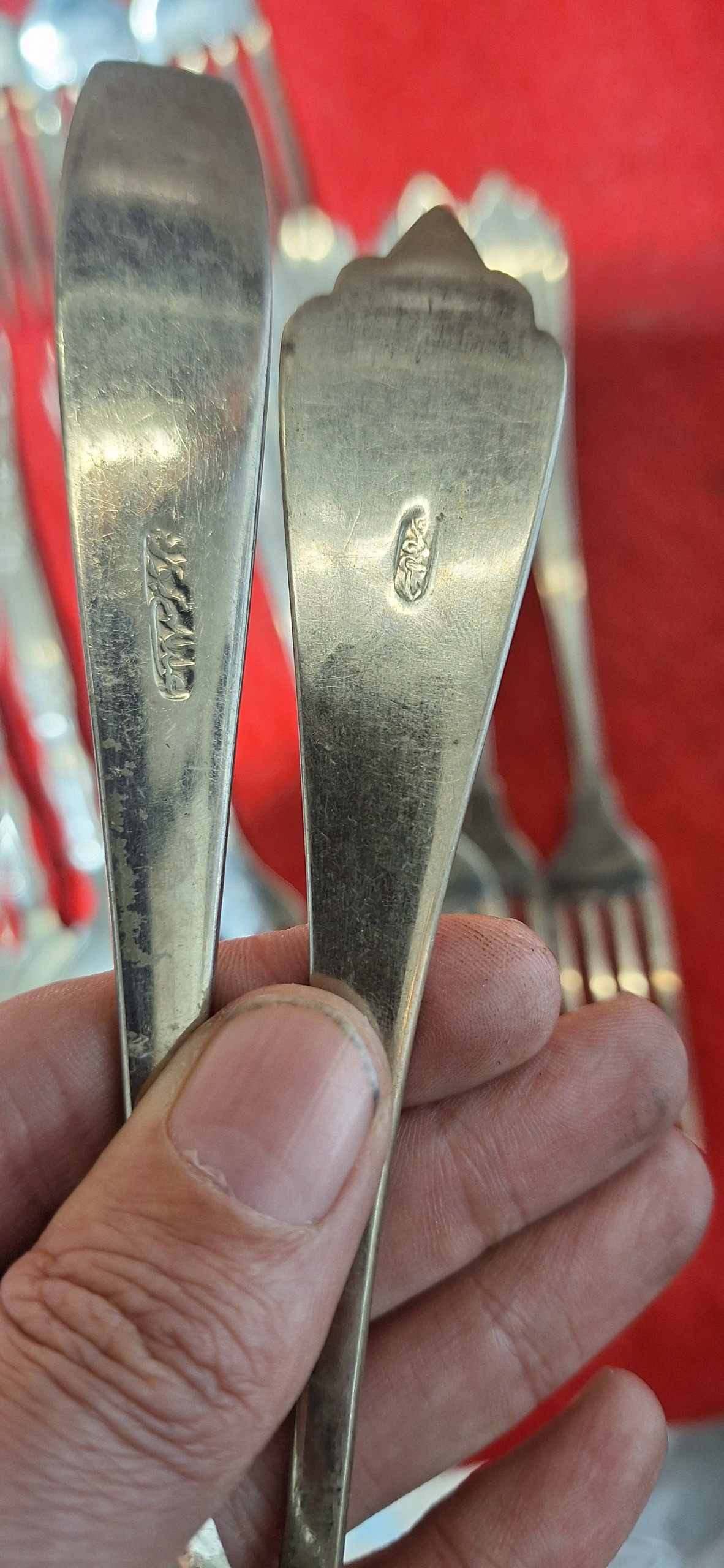 12عدد چنگال ورشو ویک دست قاشق نولبرین طبق تصویر قدیمی