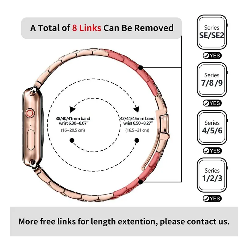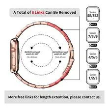 بند فلزی اپل واچ : سازگار با اپل واچ 41 میلی متری (سری 9/8/7) ، 40 میلی متری (سری SE2/SE/6/5/4) ، 38 میلی متری (سری 3/2/1) ، اپل واچ نایک پلاس ، هرمس و نسخه ، مناسب برای هر دو زن و مرد ، ظاهر زیبا به شما تجربه فوق العاده می دهد . جنس ممتاز : بند ساعت سیب فلزی Fullmosa از فولاد ضد زنگ ممتاز 304 ، سطح با تکنولوژی بالا ، لوکس ، اشراف و دوام برش خورده و ساخته شده است ، زیرا تمام جزئیات از نظر طرز کار ، طراحی و زیبایی شناسی در فرآیند تولید در نظر گرفته شده است . طول بند قابل تنظیم : بند ساعت اپل 38 میلیمتر/40 میلیمتر/41 میلیمتر برای اندازه مچ دست 6.30 اینچ تا 8.07 میلیمتر مناسب است . لطفاً هنگام سفارش اندازه مچ خود را تأیید کنید . بند پیوند ساعت اپل را می توان با ابزار حذف پیوند متصل شده کوتاه یا گسترش داد تا کاملاً به مچ دست شما برسد . نصب آسان : مچ بند ساعت اپل 38 میلی متر / 40 میلی متر / 41 میلی متر با بیمه دو دکمه از گیره تاشو در دو طرف طراحی شده است. این ساعت دارای اتصالات فولادی تصفیه شده است که برداشتن و نصب آن آسان است و ساعت شما را با دقت و ایمن قفل می کند . یا حق