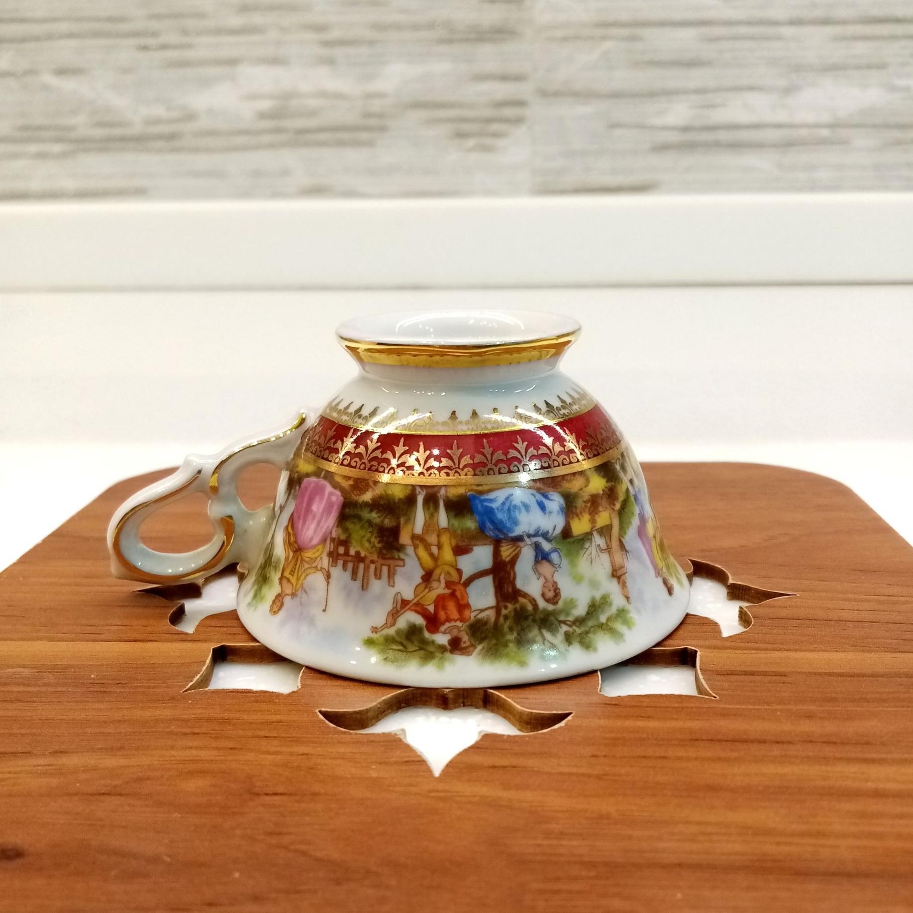 تک فنجان قهوه خوری سلطنتی قدیمی و نایاب در دنیا. ارتفاع حدود 5 سانت و قطر دهانه حدود 7 سانتیمتر. قیمت برای 1 عدد فنجان تک وبدون نعلبکی میباشد.لطفا جهت اطلاعات بیشتر مارک این فنجان را جستجو فرمایید.
