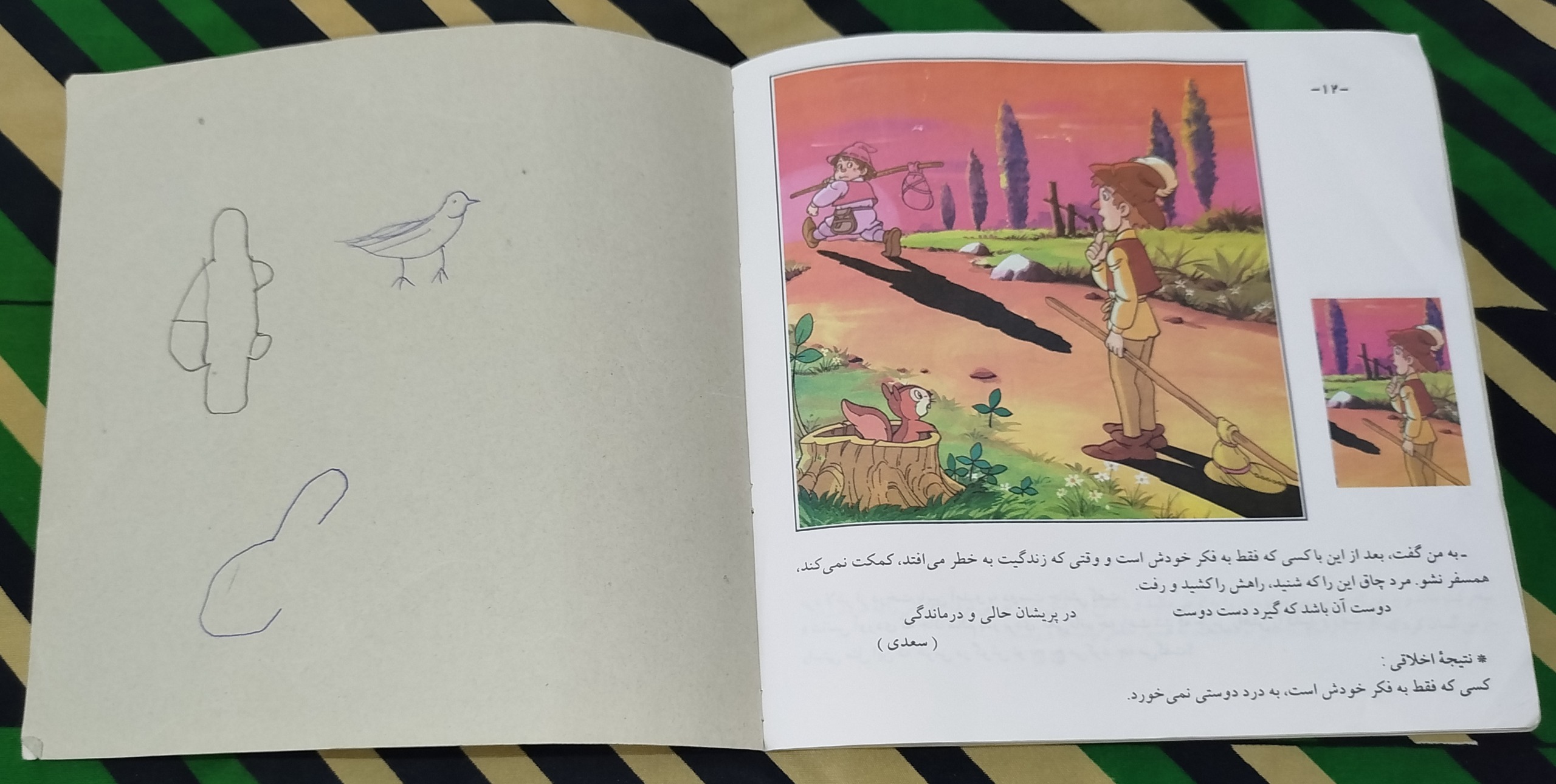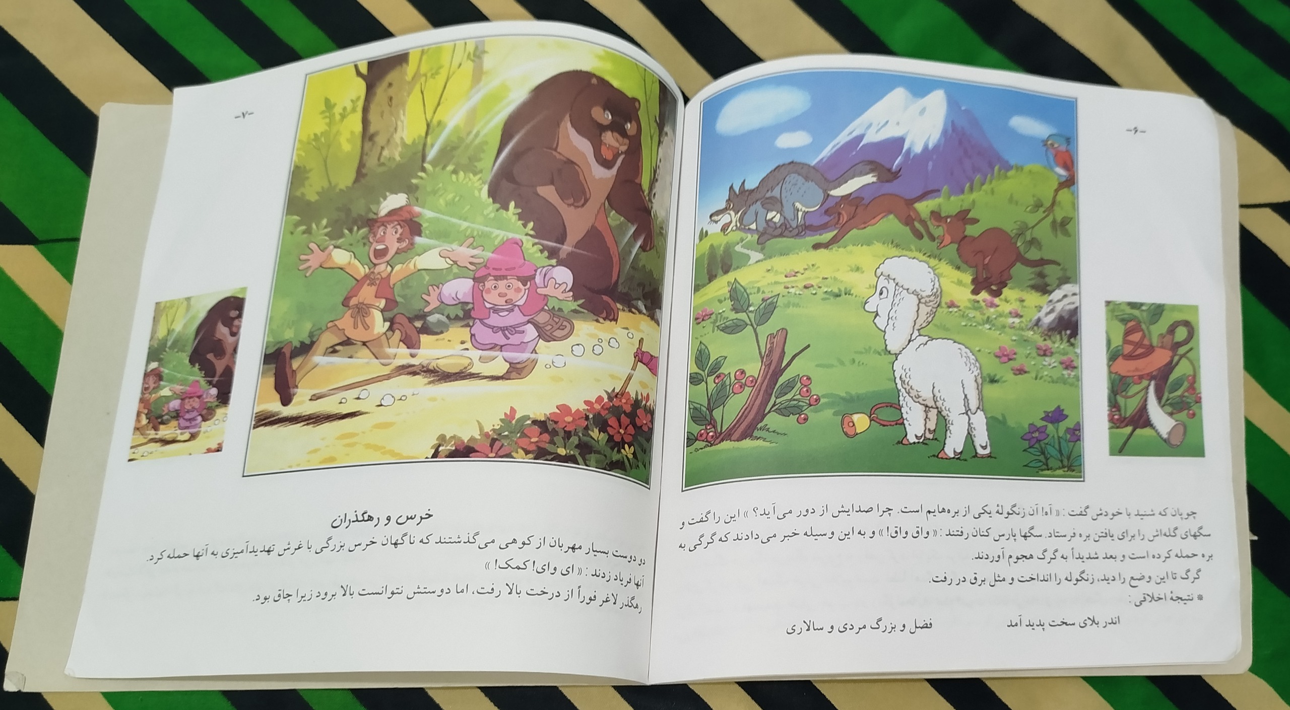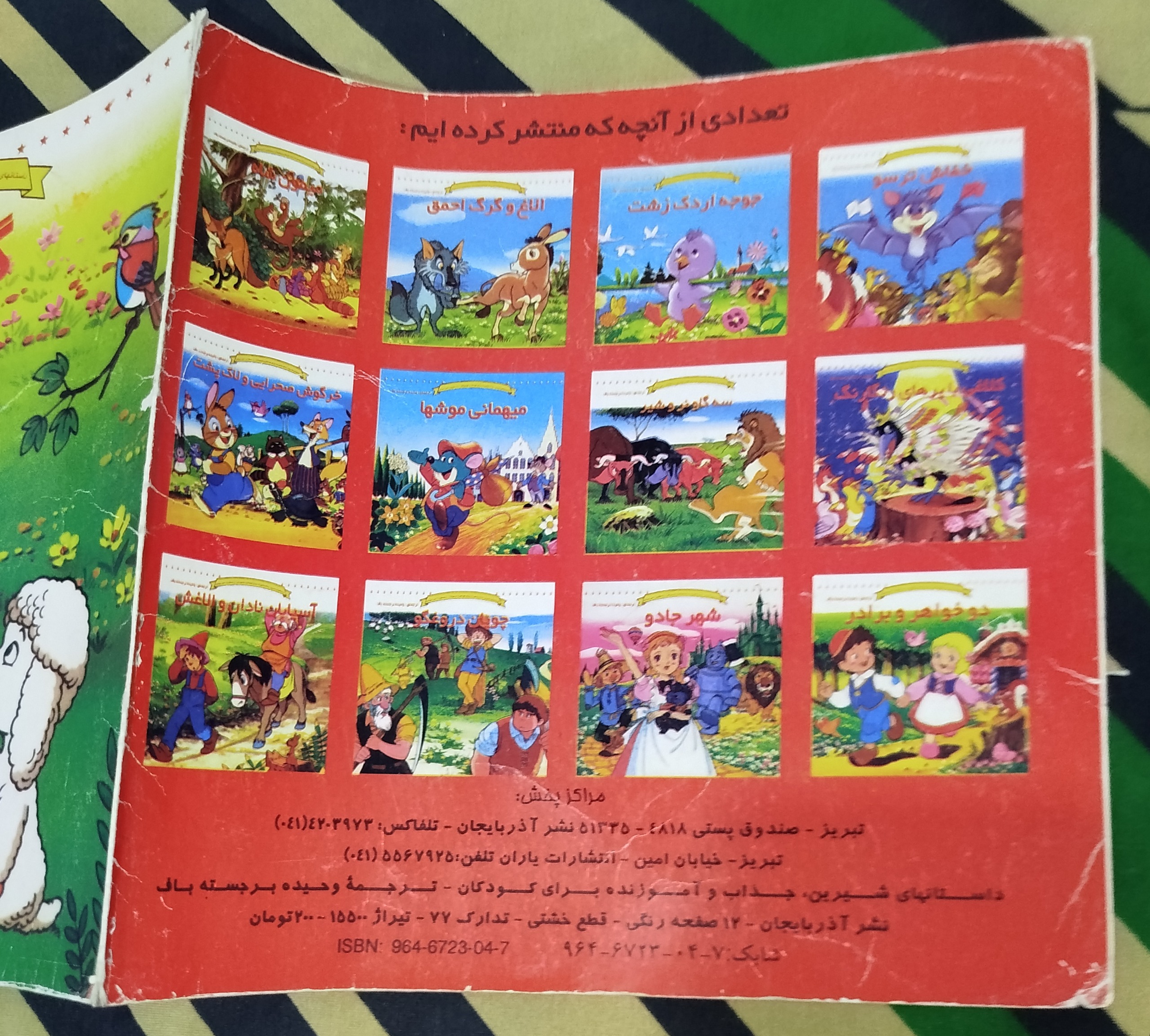 کتاب خاطره انگیز گرگ و بره نشر آذربایجان قطع خشتی تاریخ چاپ ندارد اما به صورت تجربی چاپ 1377است.تعداد صفحات 12 و صفحات کامل است.داخل جلدها خط و نقاشی دارد که عکس گذاشته ام.بسیار کمیاب و اصل و نوستالژی