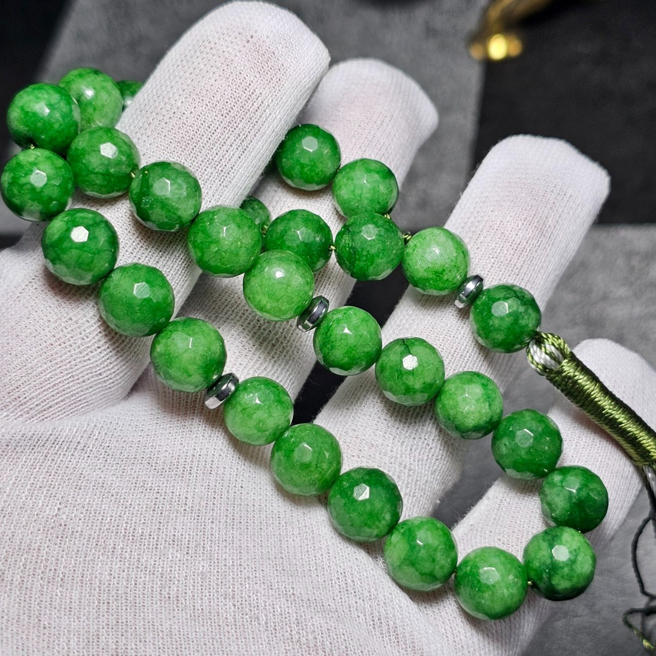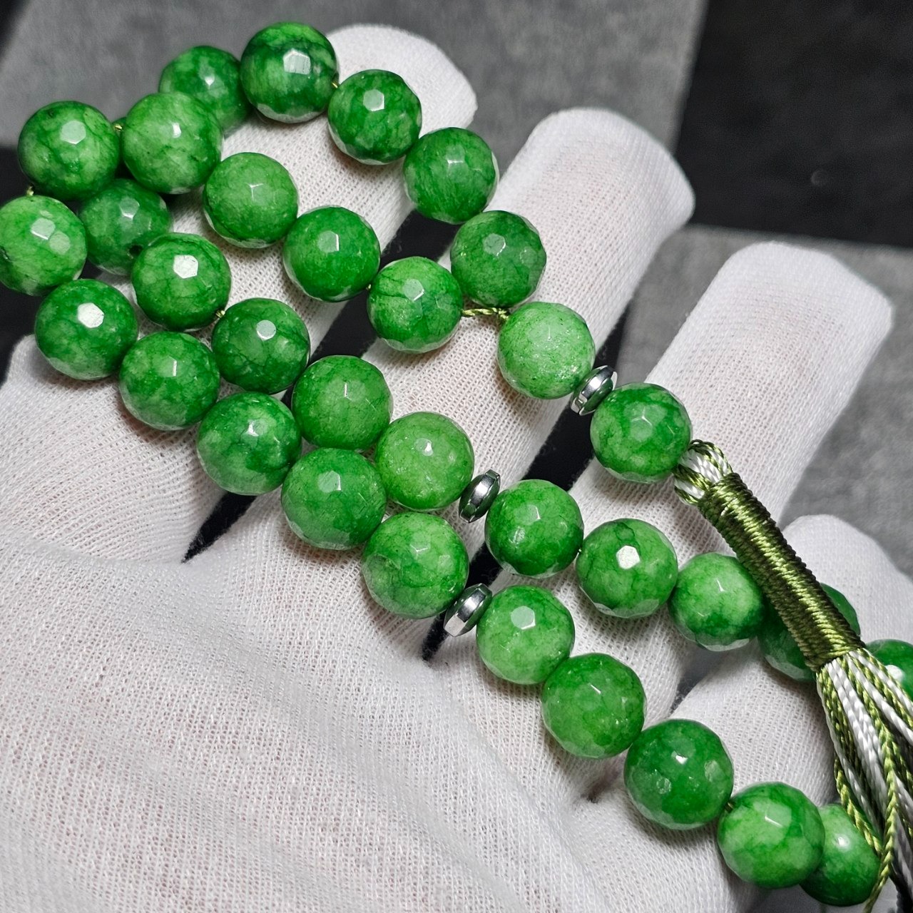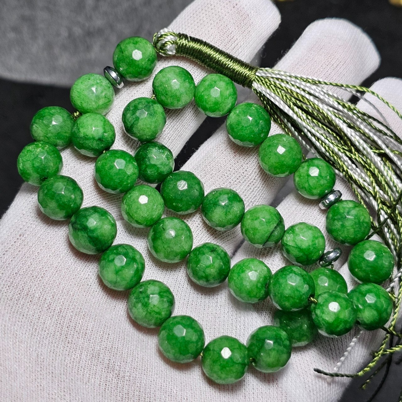 تسبیح 33 دانه سنگ جید سبز معدنی تراش دار 37090