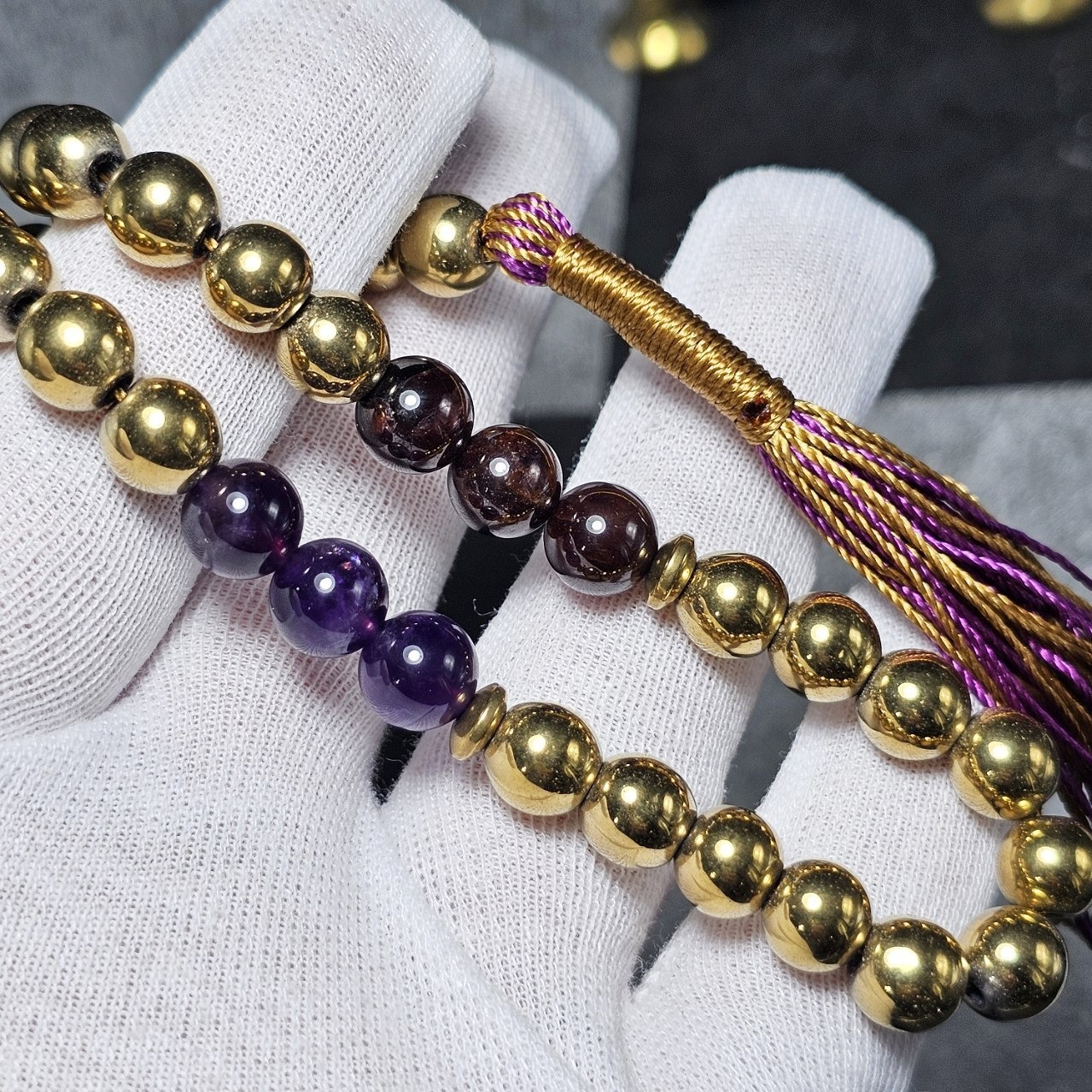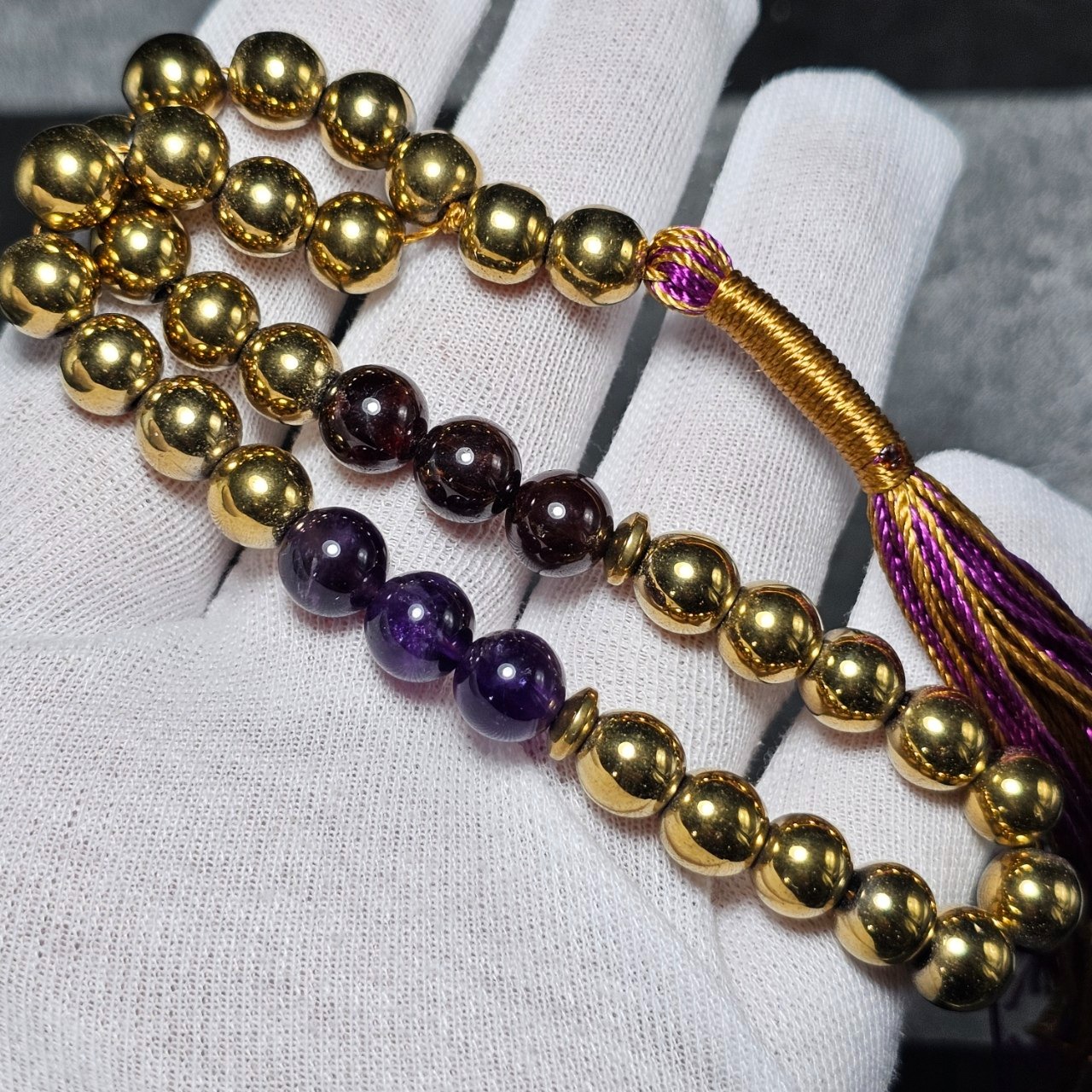 تسبیح 33 دانه سنگ ماه تولد معدنی ( حدید گارنت آمیتیست )
