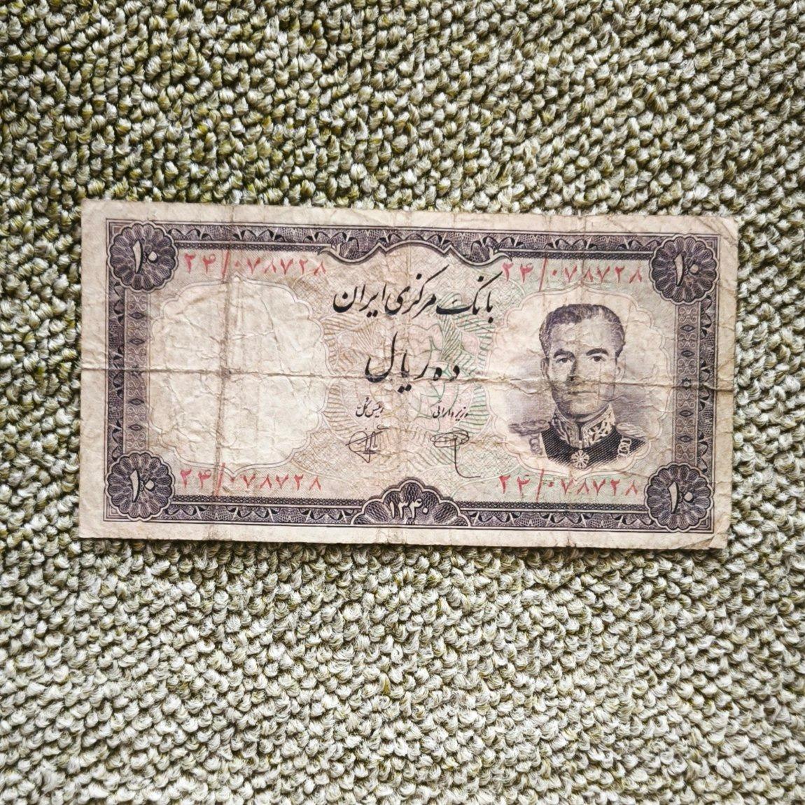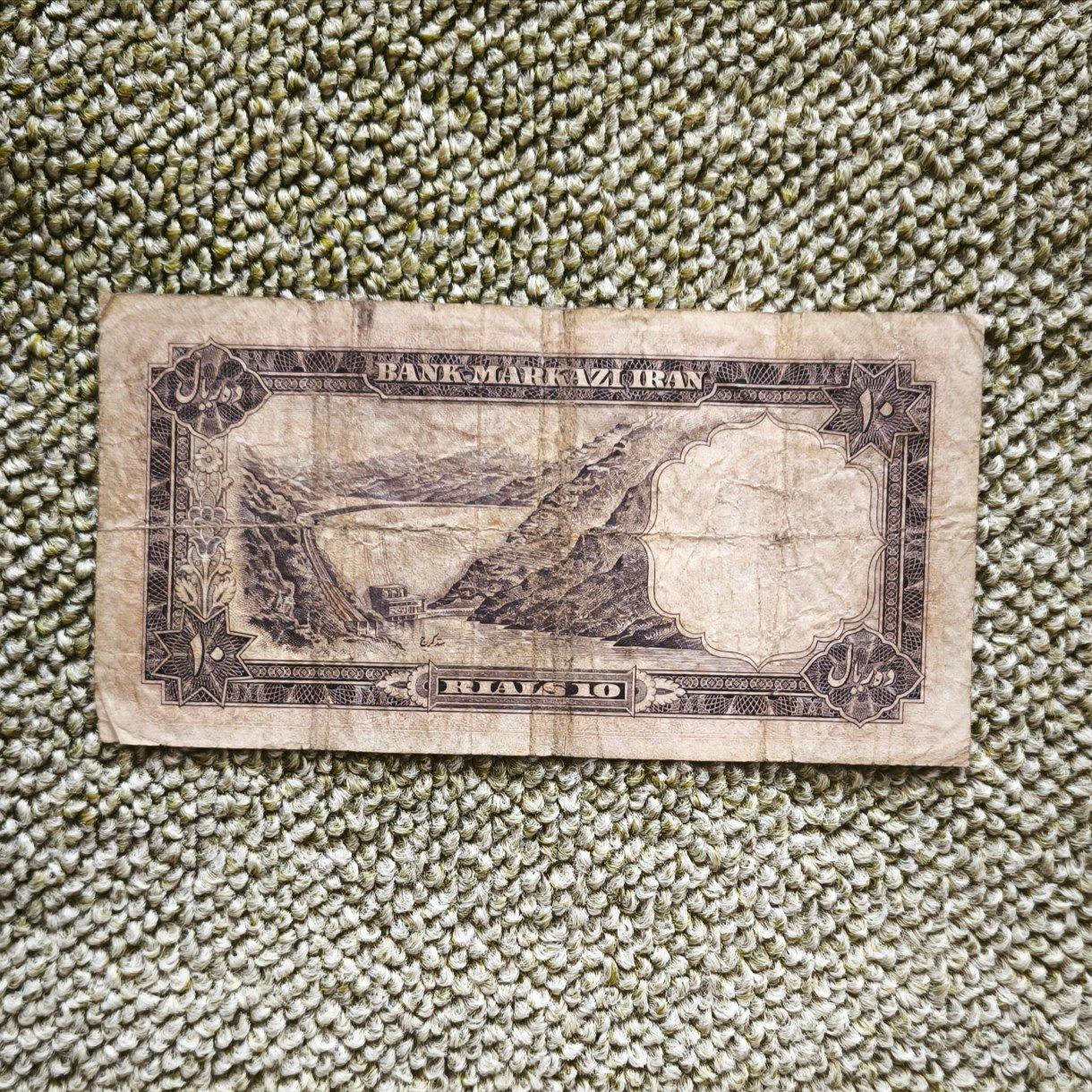 10 ریال بانک مرکزی سری اول کد 121 کتاب با تصویر محمدرضا پهلوی روی اسکناس و سد کرج در پشت اسکناس.