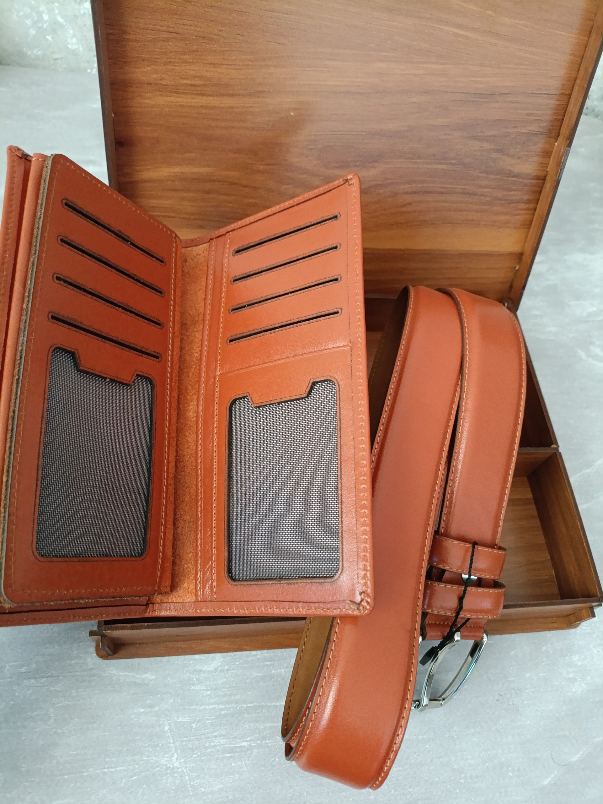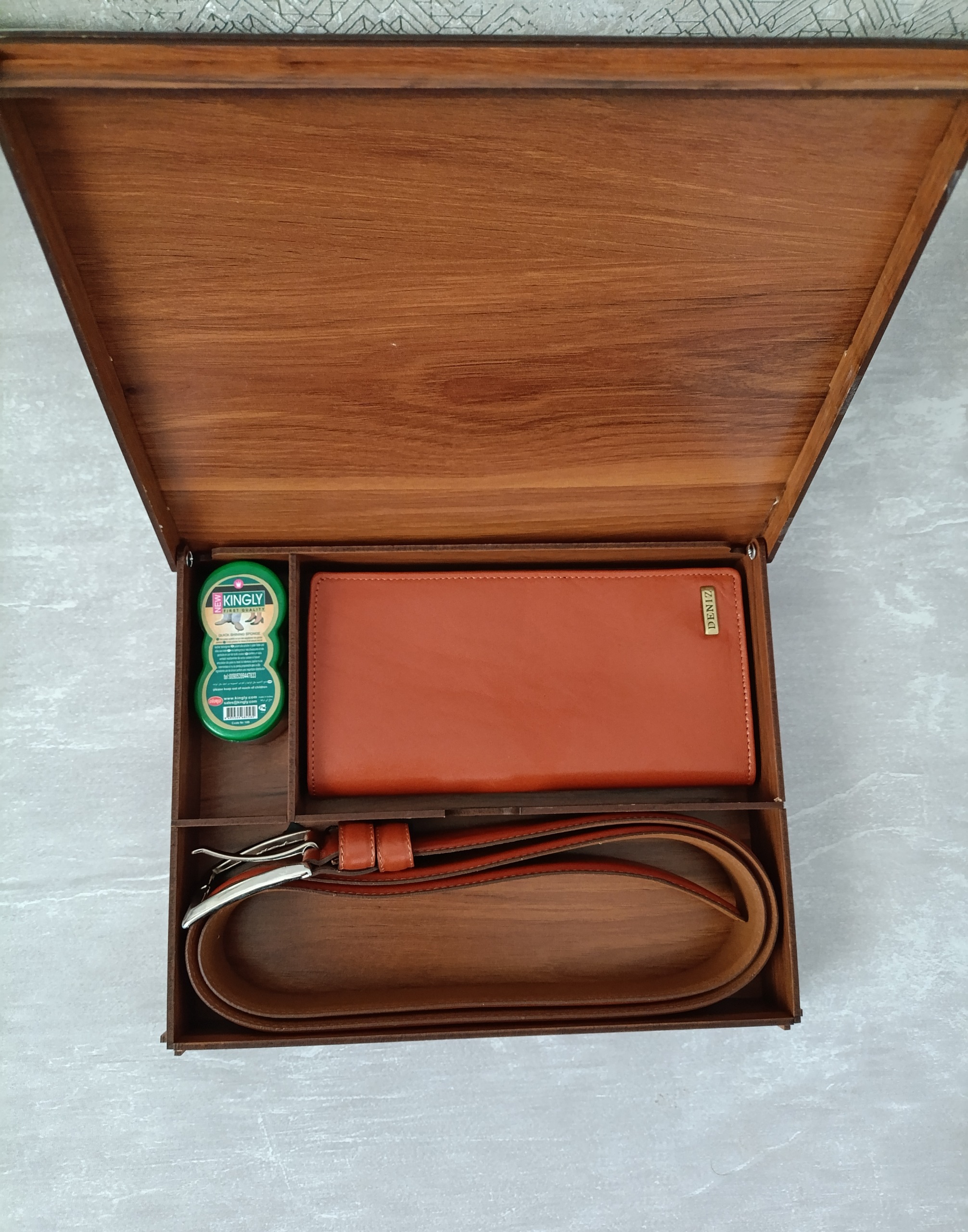 ست کیف پول و کمربند چرمی دنیز