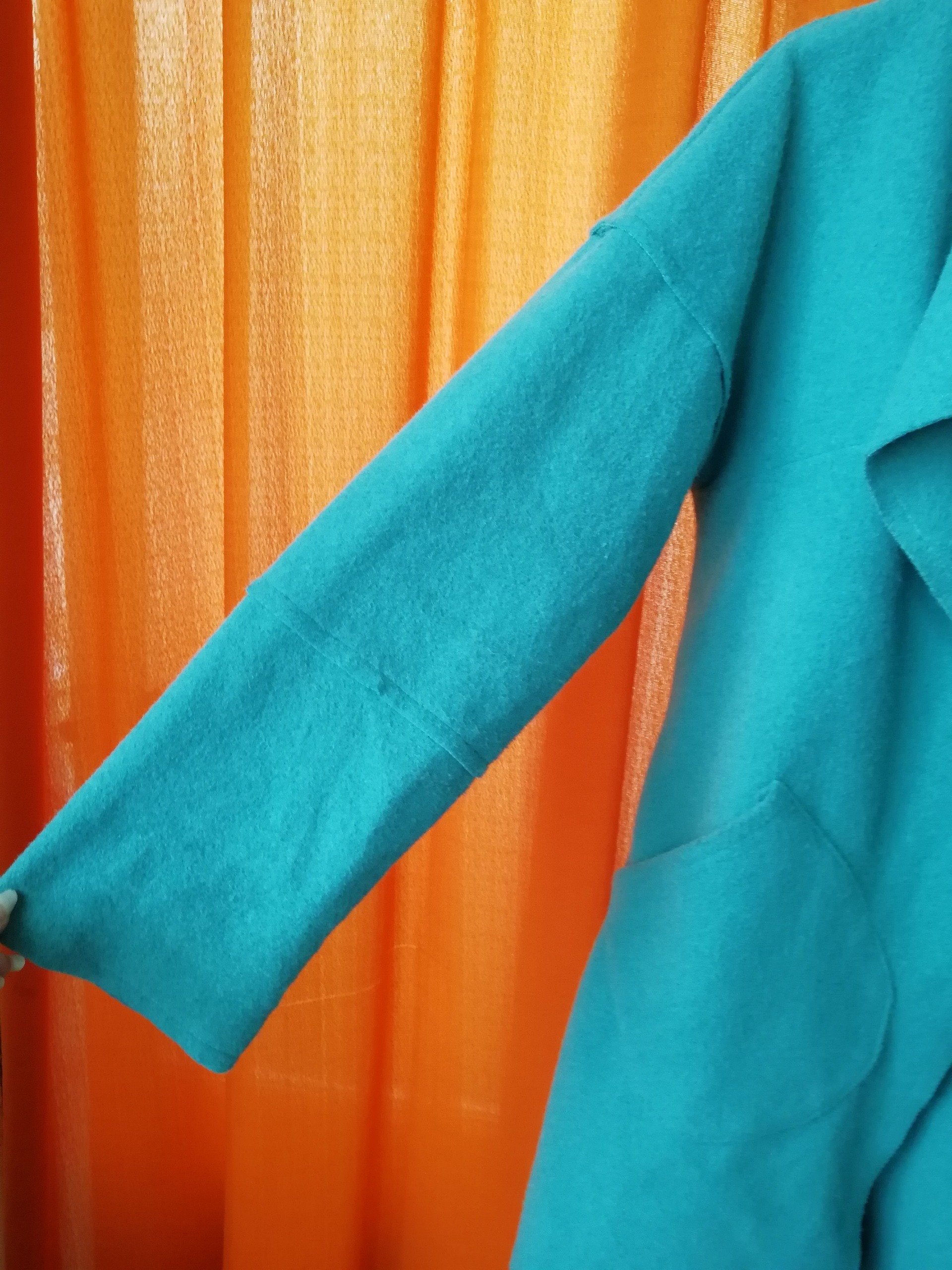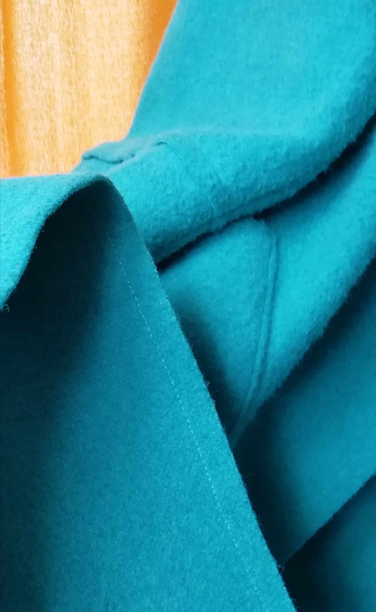 پالتو برش دوزی هست و لبه های کارهمانطور که در تصویر می بینید دولا چرخ نشده