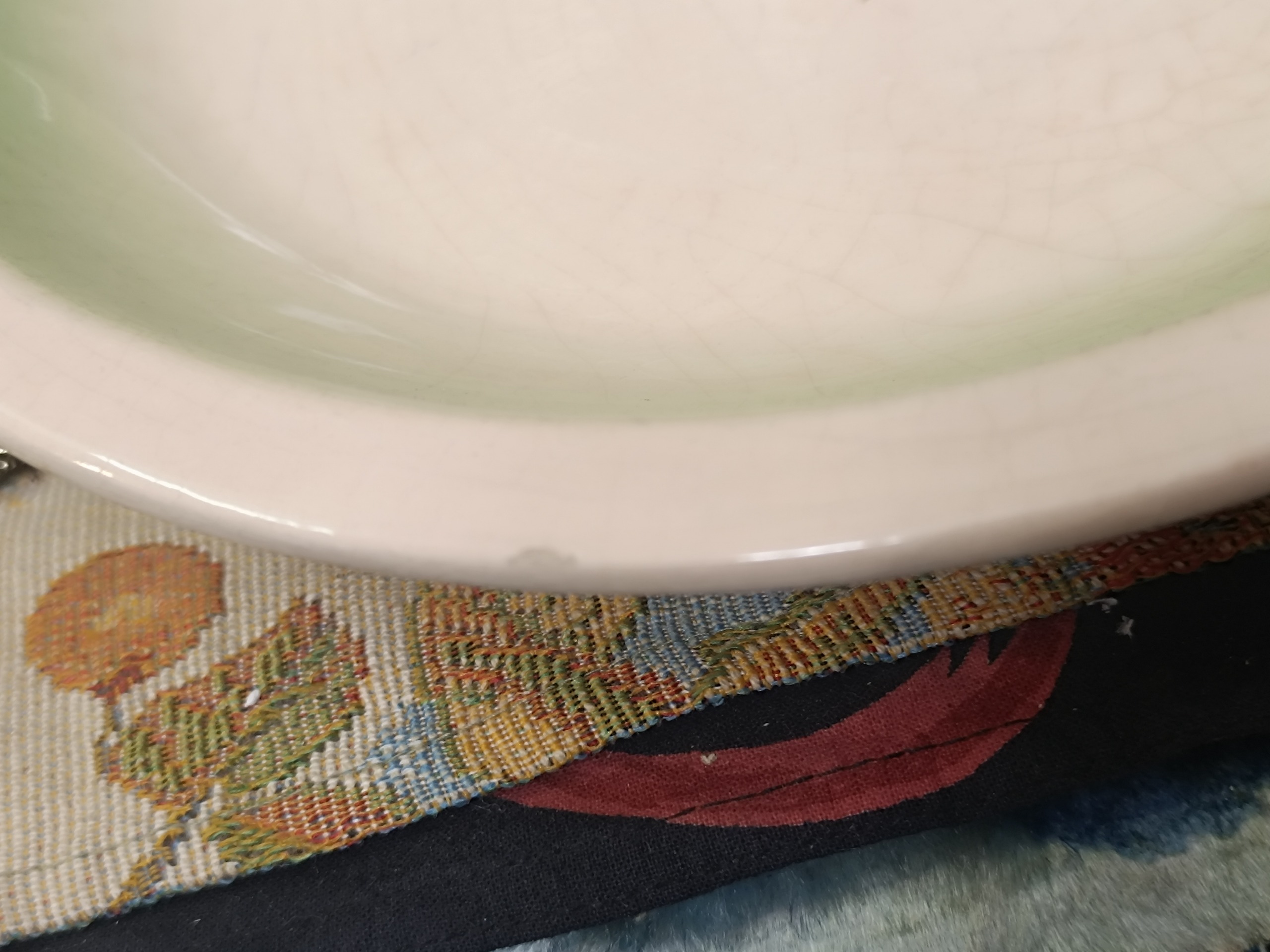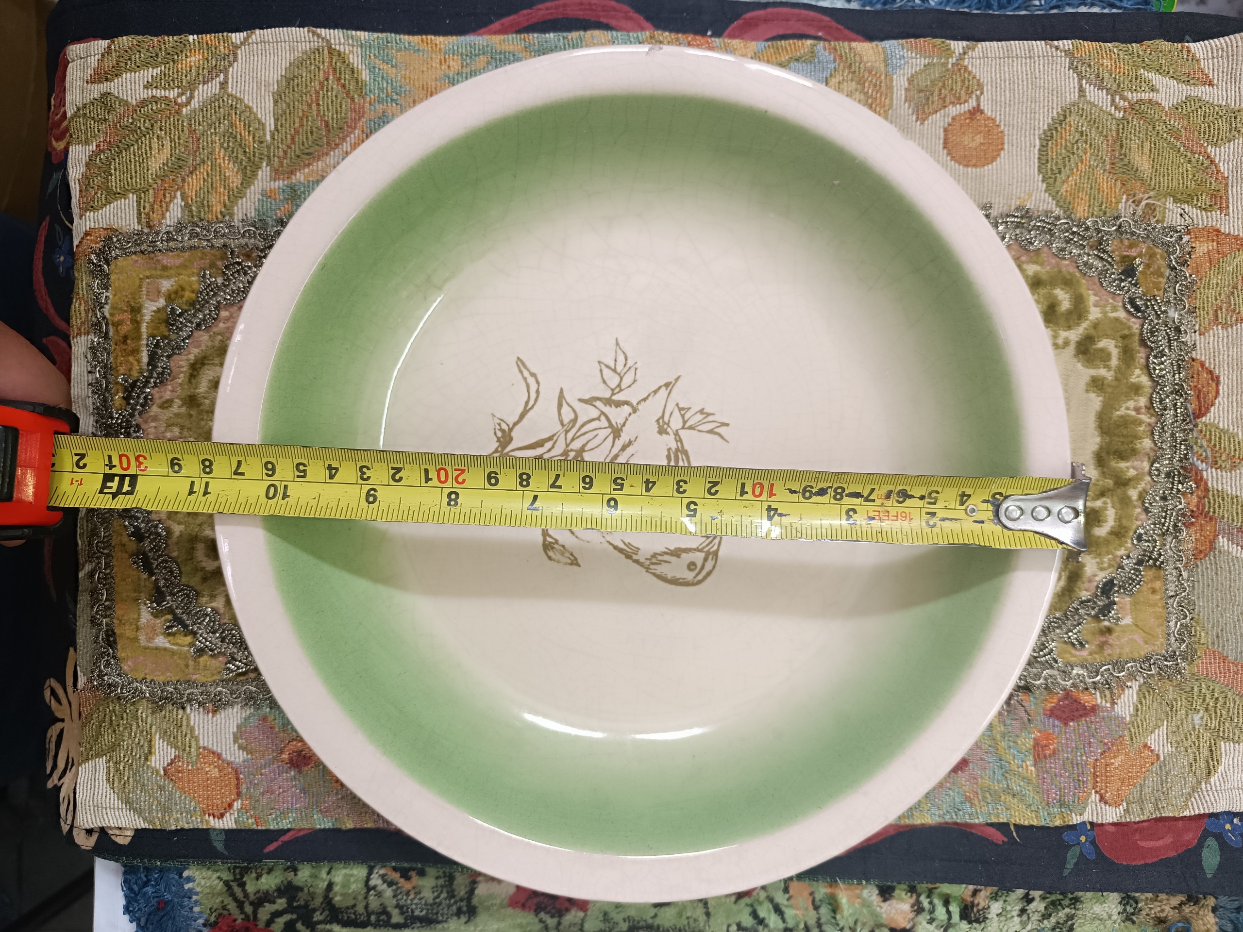 دست کامل انار خوری شامل 1 عدد بشقاب و 6 عدد پیش دستی ، جنس سرامیک ، نقاشی و رنگ و پخت کار دست ، بالای 70 سال قدمت ، کار بدلیل قدمت دارای ترک لعاب و دو تا پریدگی جزیی در لبه بشقاب ، یه کار تک و آنتیک قدیمی ، کیفیت و ابعاد مطابق تصویر ، فروش بصورت دست
