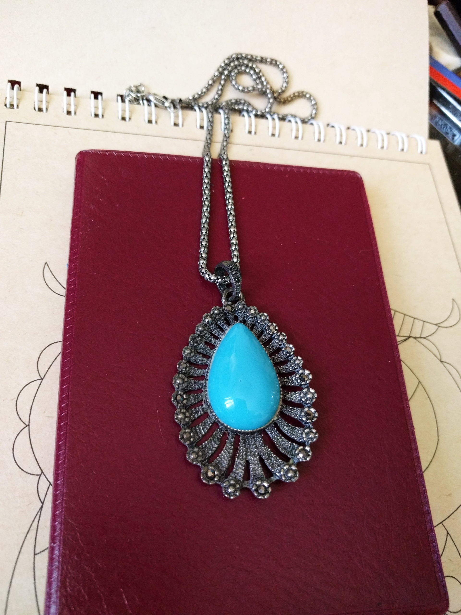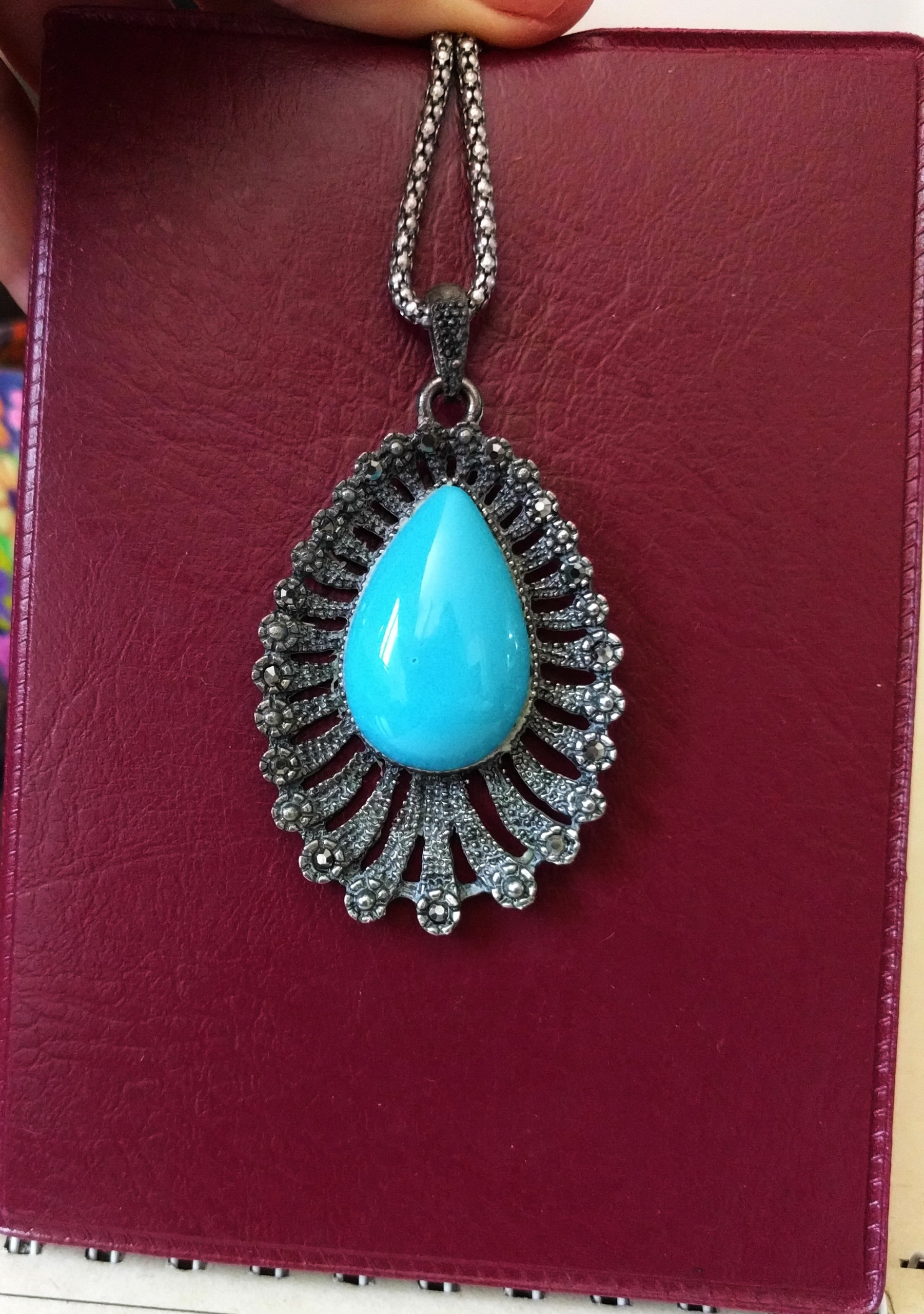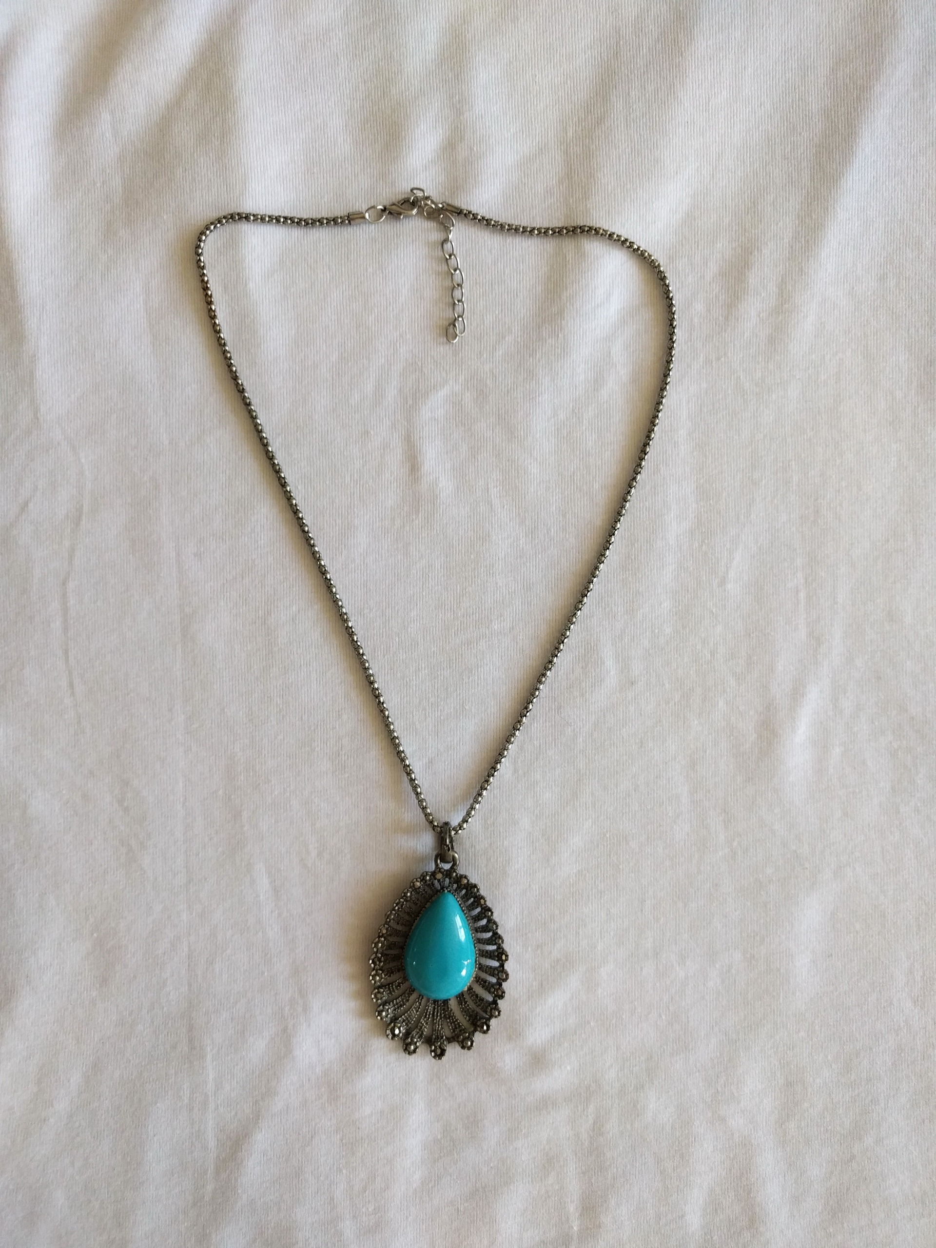گردنبند زیبای نگین فیروزه ای همراه با زنجیر